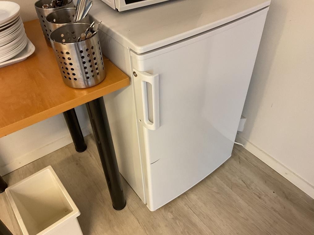 Myyntikohteet » 1. Monipalvelukeskus Tsemppi ry:n konkurssipesä, TURKU (1756671-3) HUOM! PÄÄTTYY MA (6.10), 03.10.2025 » A23. Jääkaappi, mikroaaltouuni, pöytä astioineen, pyöreä pöytä