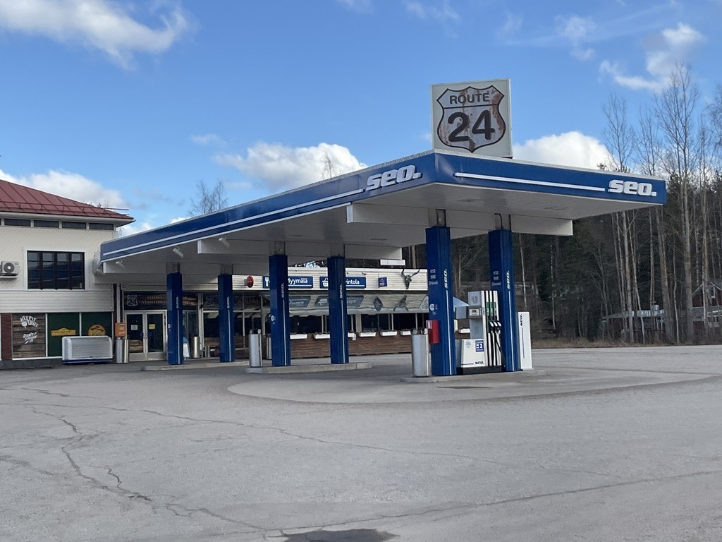 Huoltoasemakiinteistöllä voi käydä tankaamassa ja siten samalla tutustua kohteeseen.