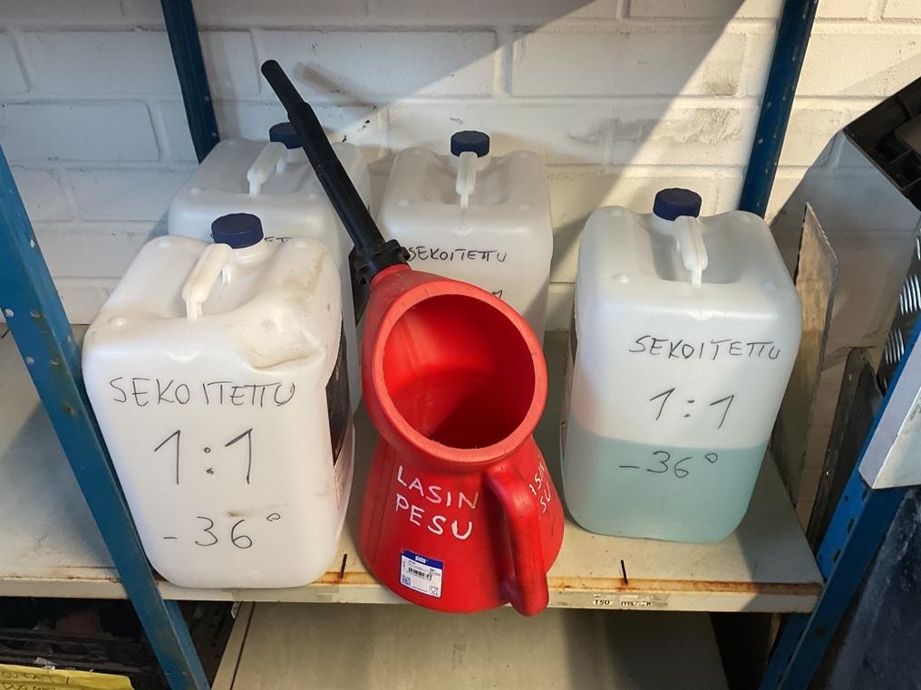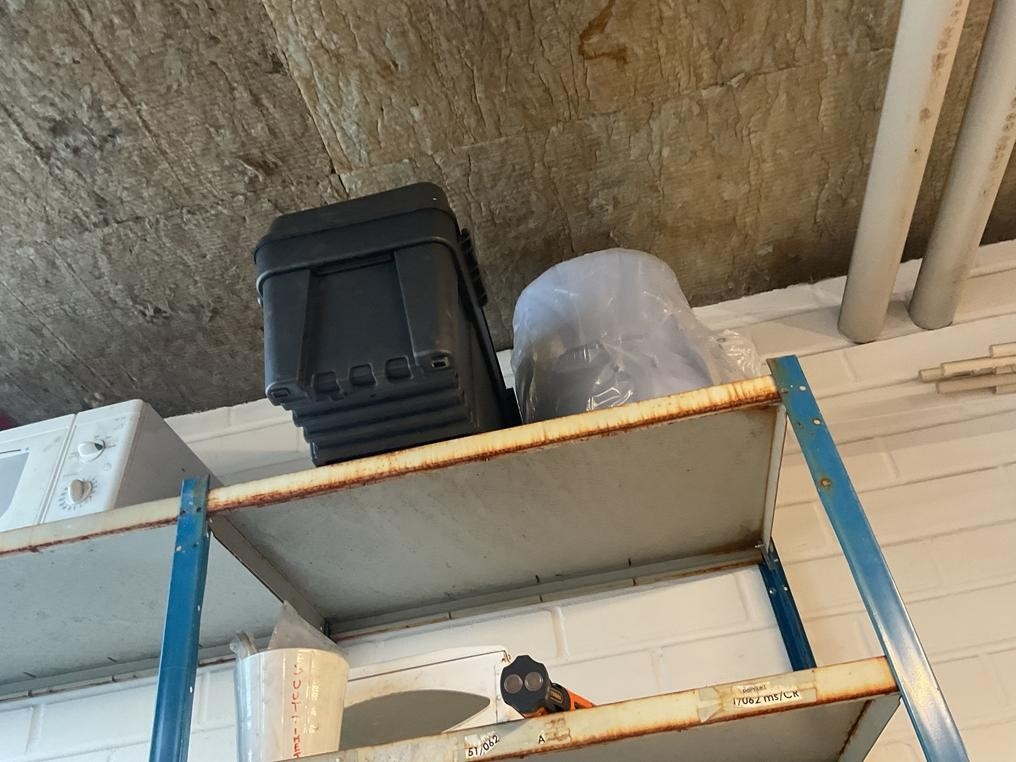Kahdessa hyllyvälissä olevat kiinnitystarvikkeet ym. (Hylly kuuluu myytävään kohteeseen)