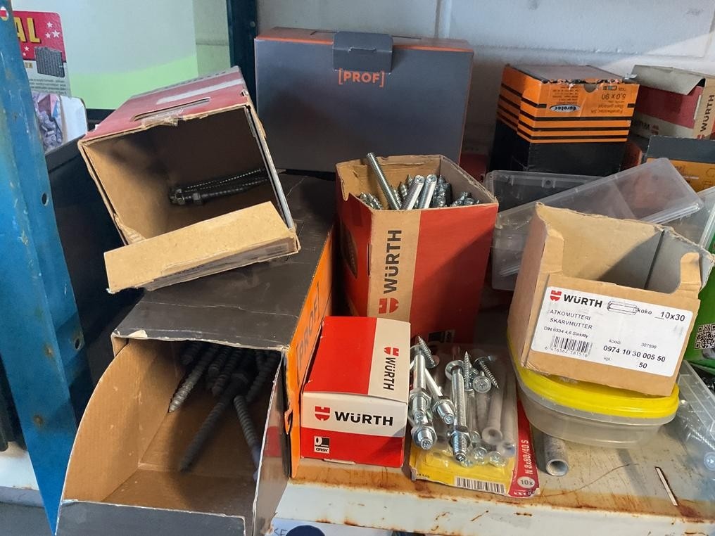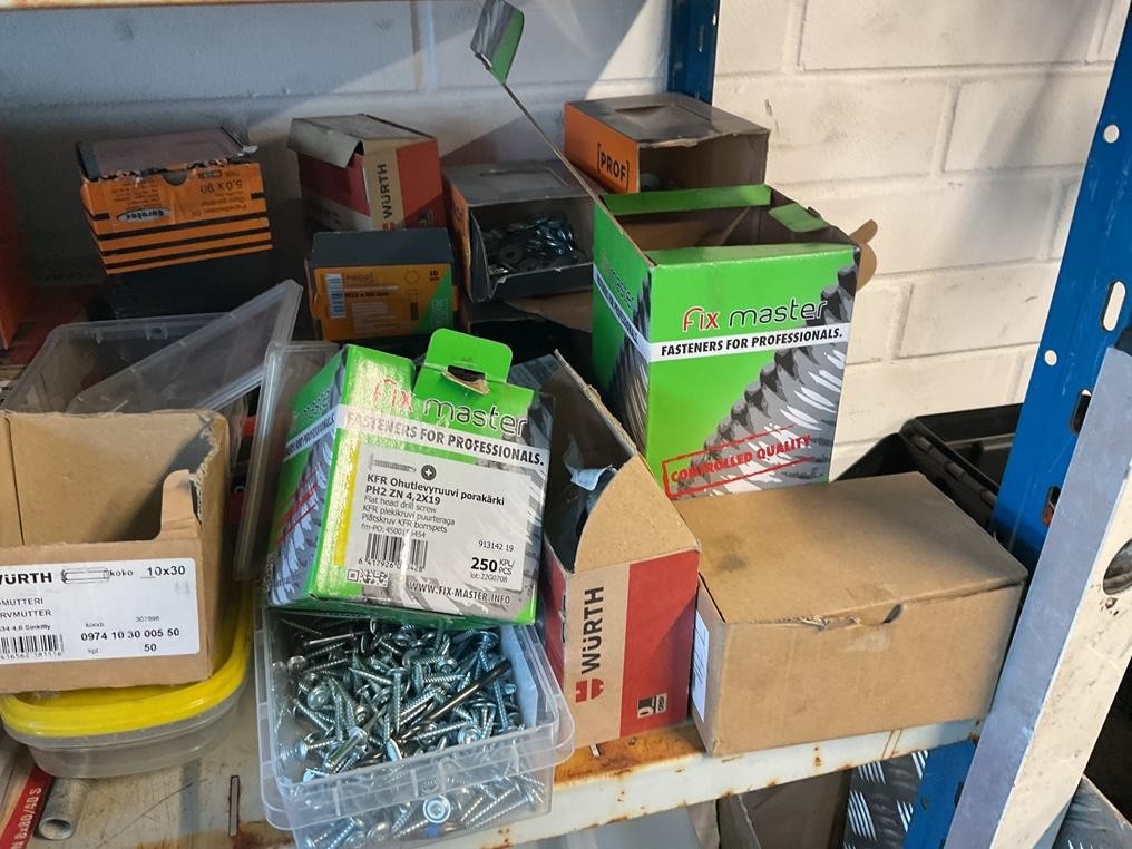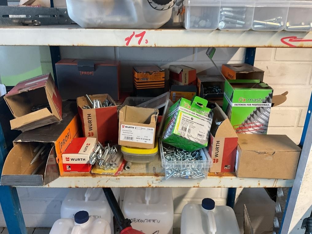 Myyntikohteet » 3. Saturinne-Yhtiöt Oy:n konkurssipesä, TURKU (2544180-6), 09.10.2025 » 11. Kahdessa hyllyvälissä olevat kiinnitystarvikkeet ym. (Hylly kuuluu myytävään kohteeseen)