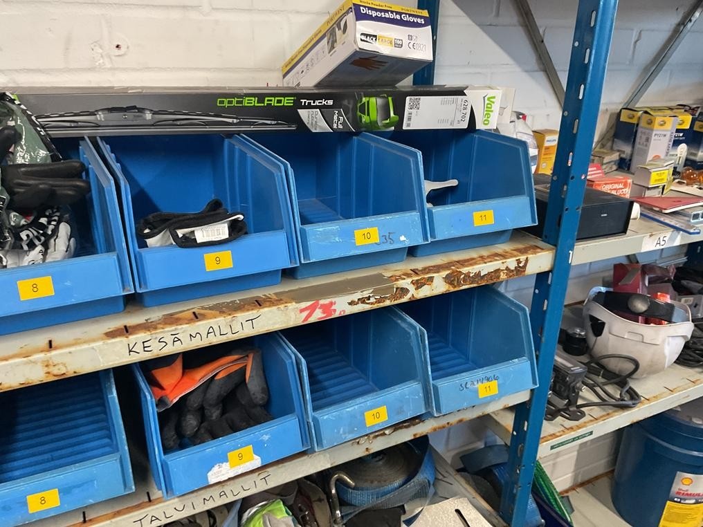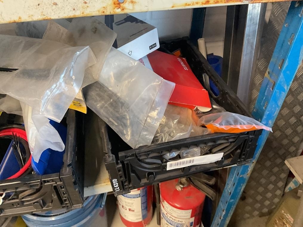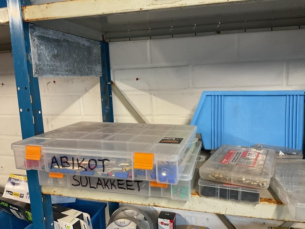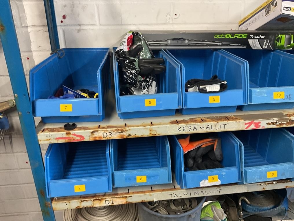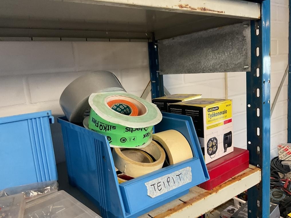 Myyntikohteet » 3. Saturinne-Yhtiöt Oy:n konkurssipesä, TURKU (2544180-6), 09.10.2025 » 13. Kolmessa hyllyvälissä olevat liinat, muovilokerot, lisävalot, polttimot ym. (Hylly kuuluu myytävään kohteeseen)
