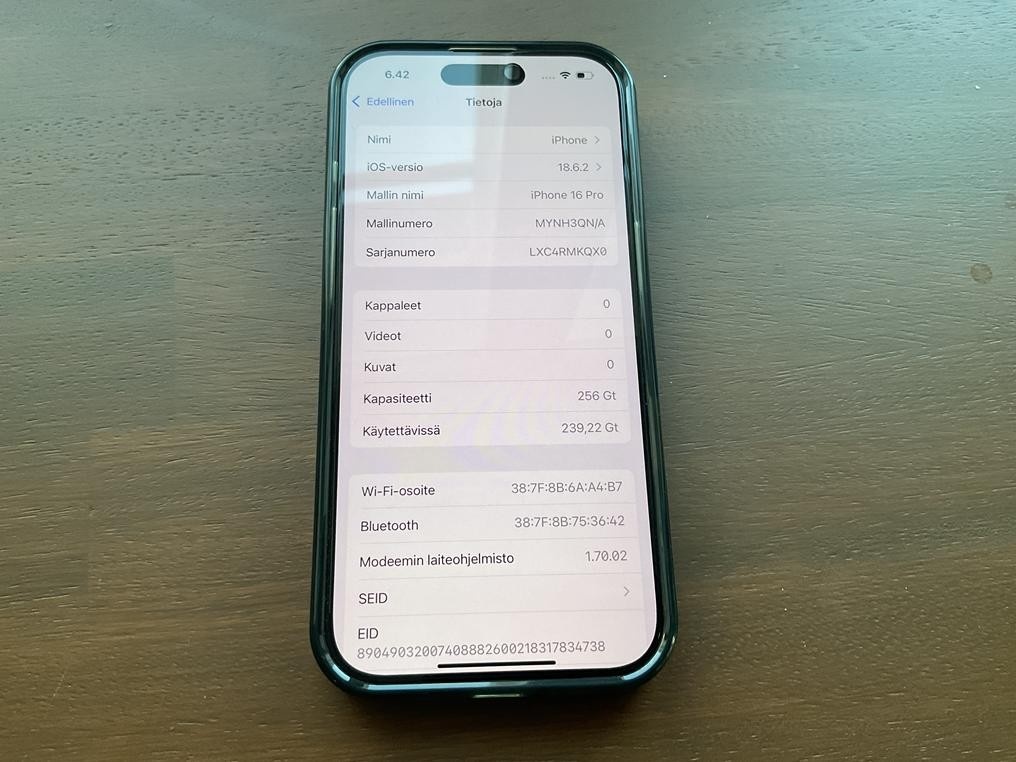 Myyntikohteet » 4. Autopalvelu Roka Oy:n konkurssipesä, NOUTO FORSSA (3321807-3), 09.10.2025 » 56. Apple iPhone 16 Pro 256 Gt