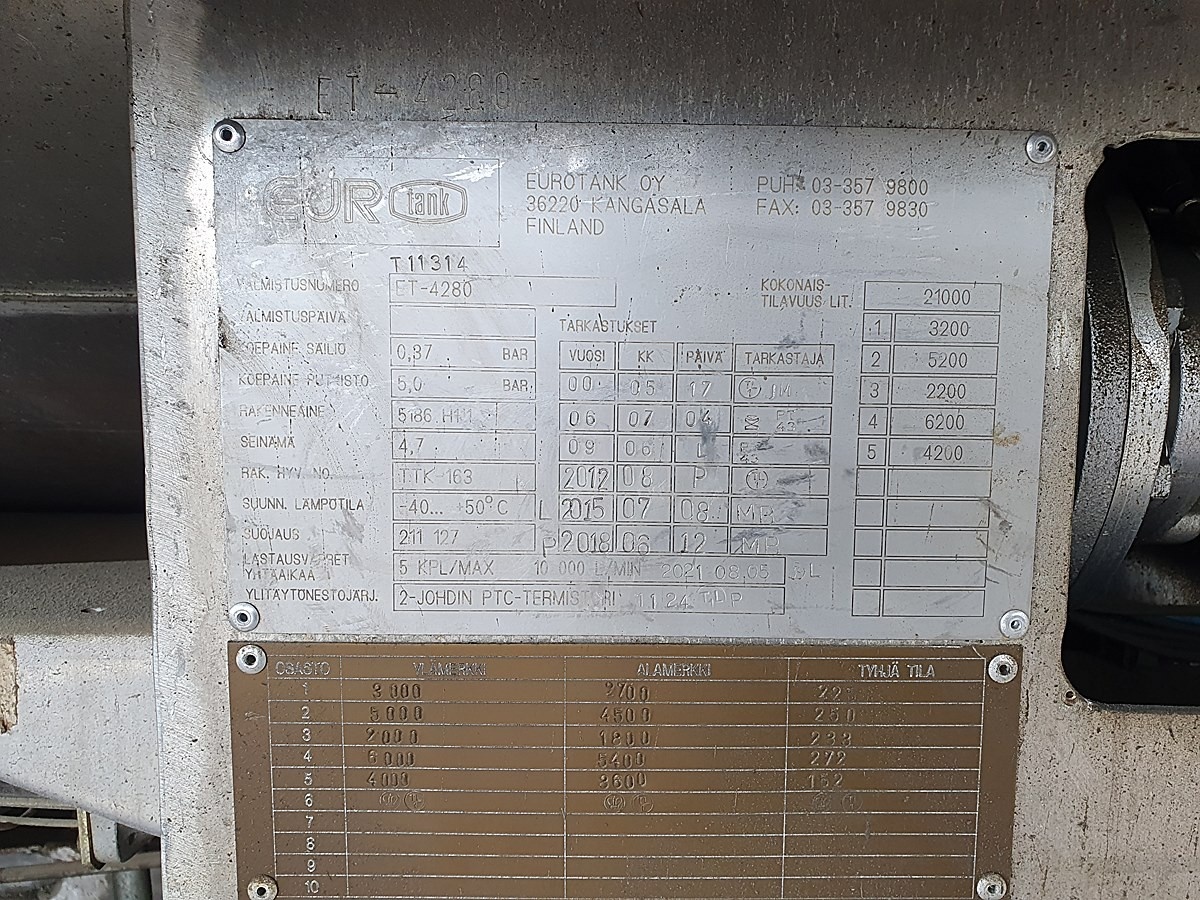 Lisätiedot: säiliö osastoitu 5 osaan, säiliön tilavuus 21 m³
