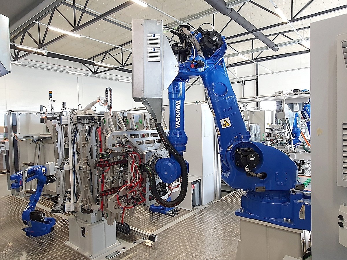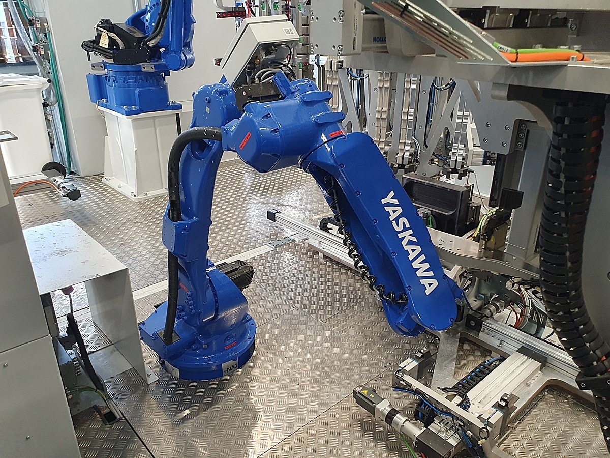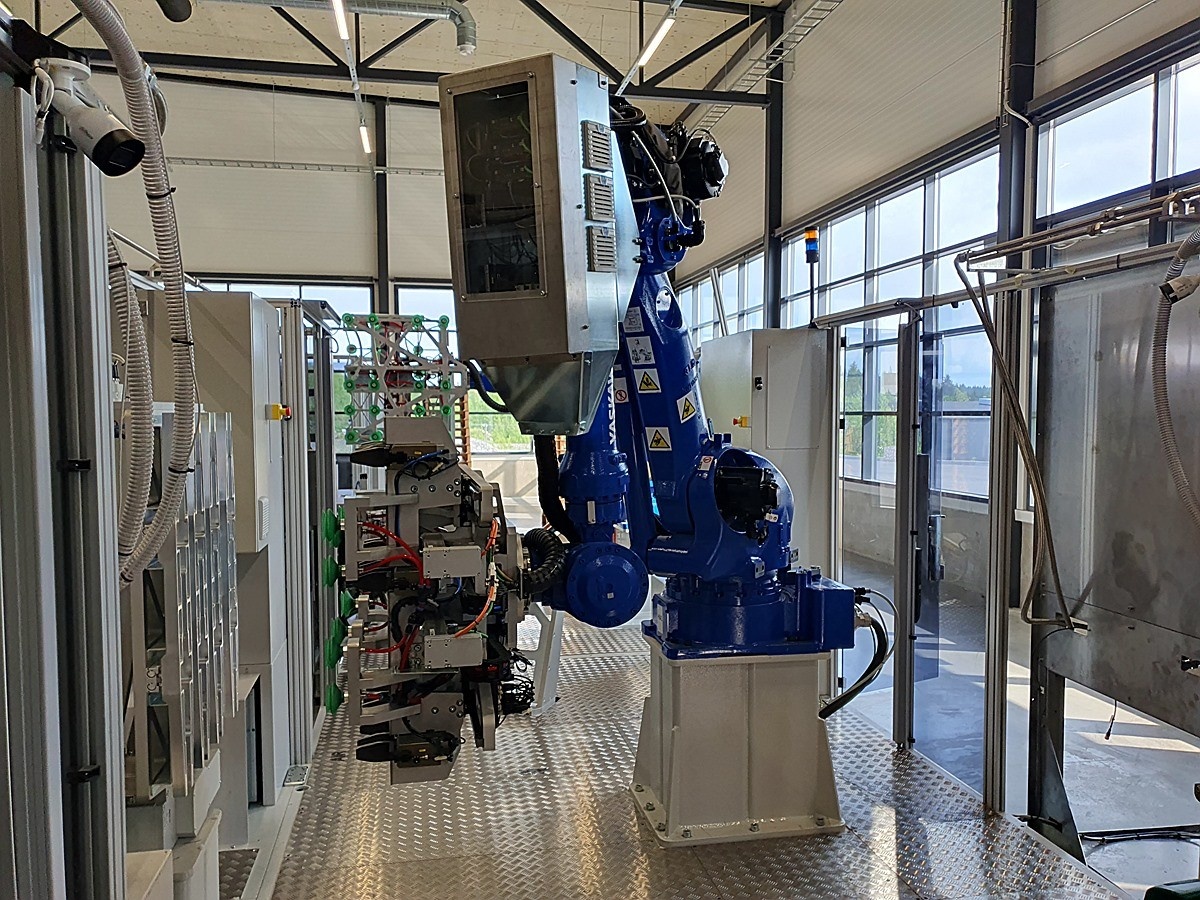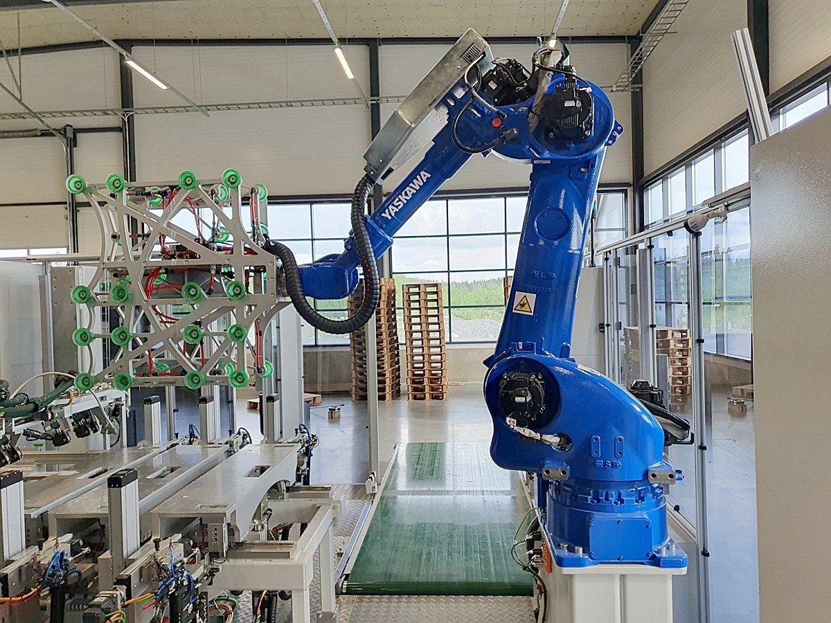 - linjasto on täysin automatisoitu, etäohjattava/-valvottava ja koostuu 10 Yaskawan teollisuusrobotista