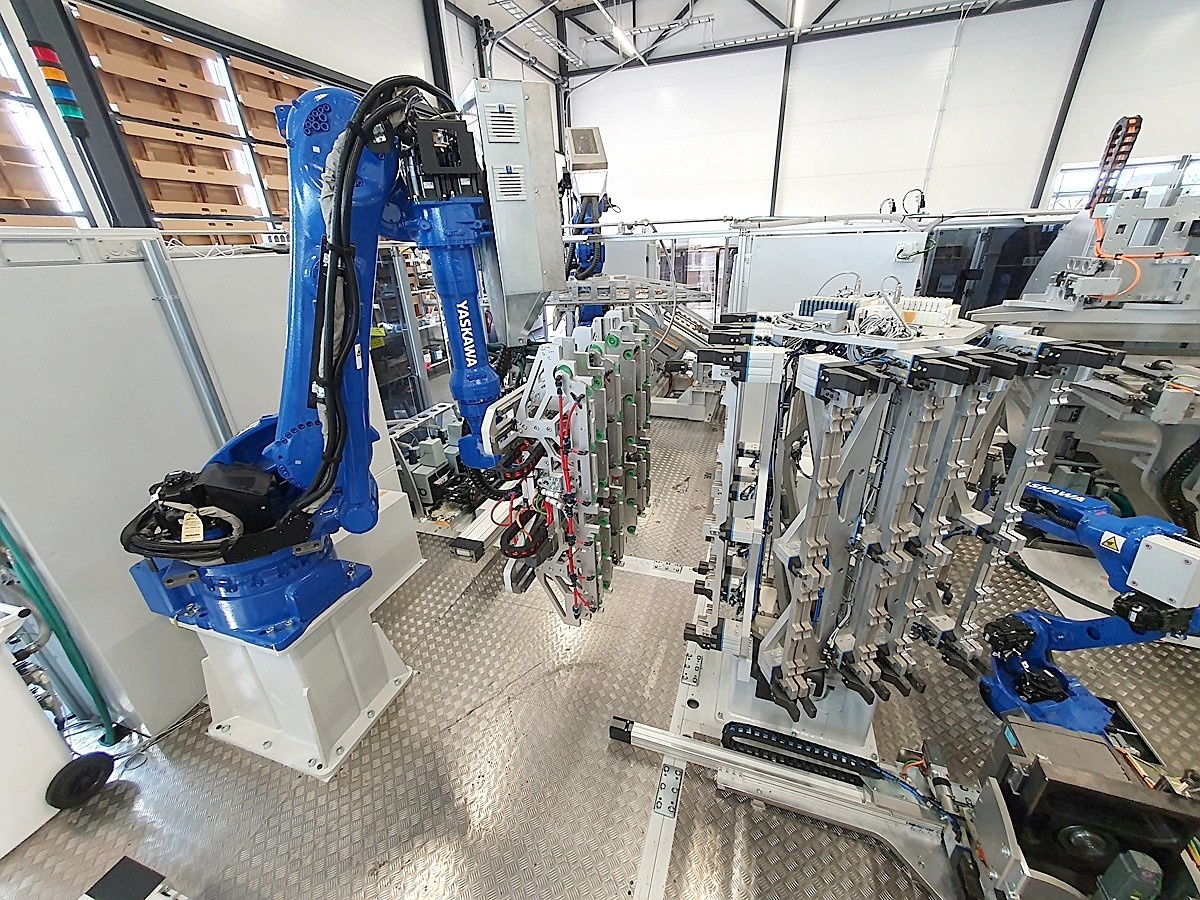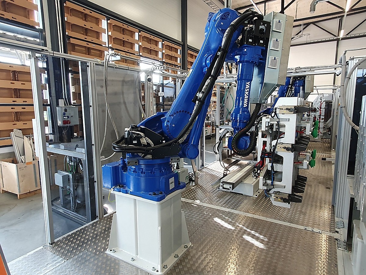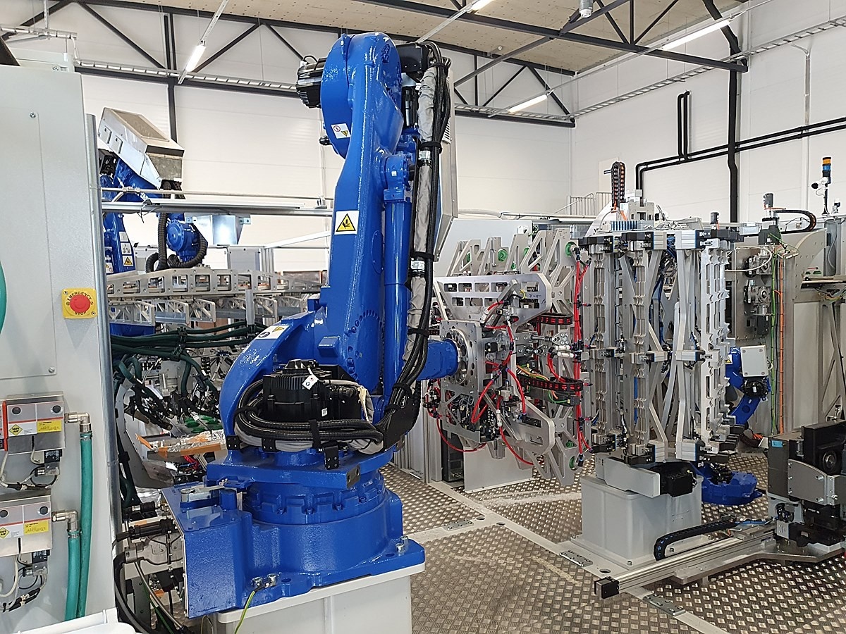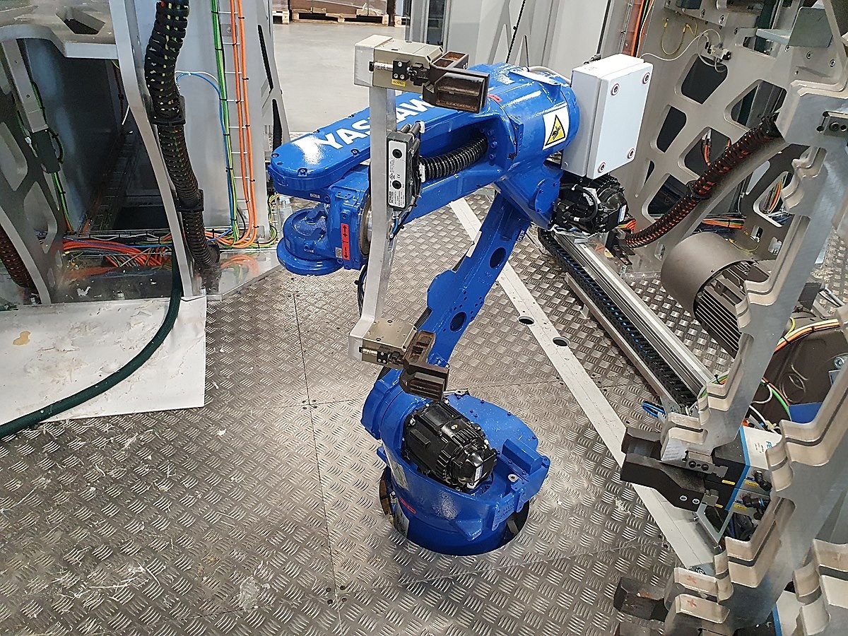 - linjasto on täysin automatisoitu, etäohjattava/-valvottava ja koostuu 10 Yaskawan teollisuusrobotista