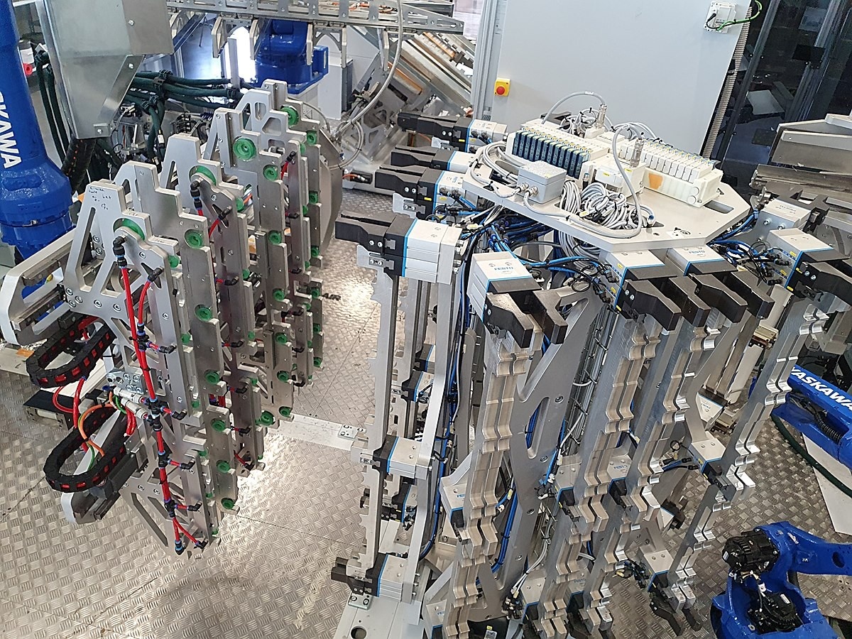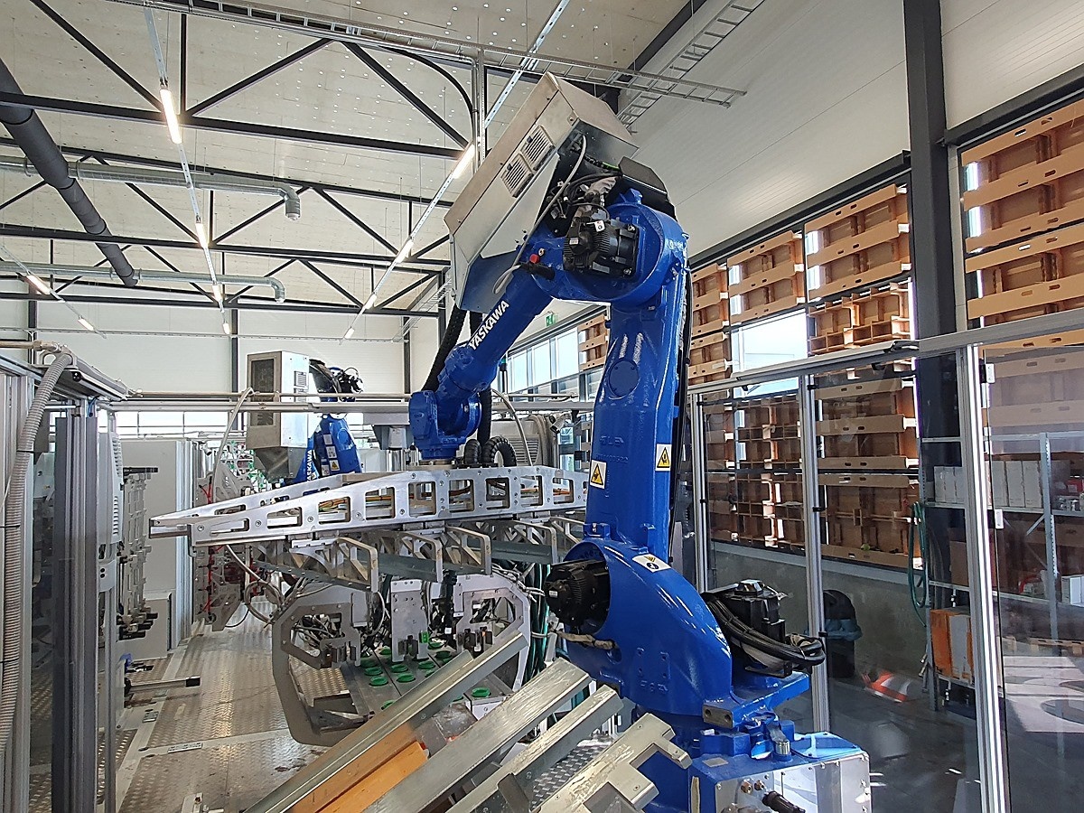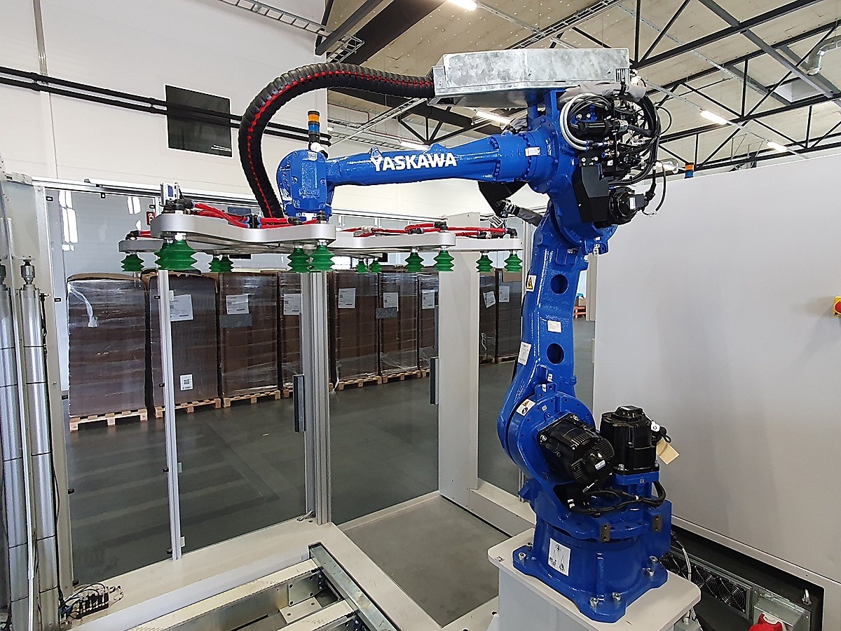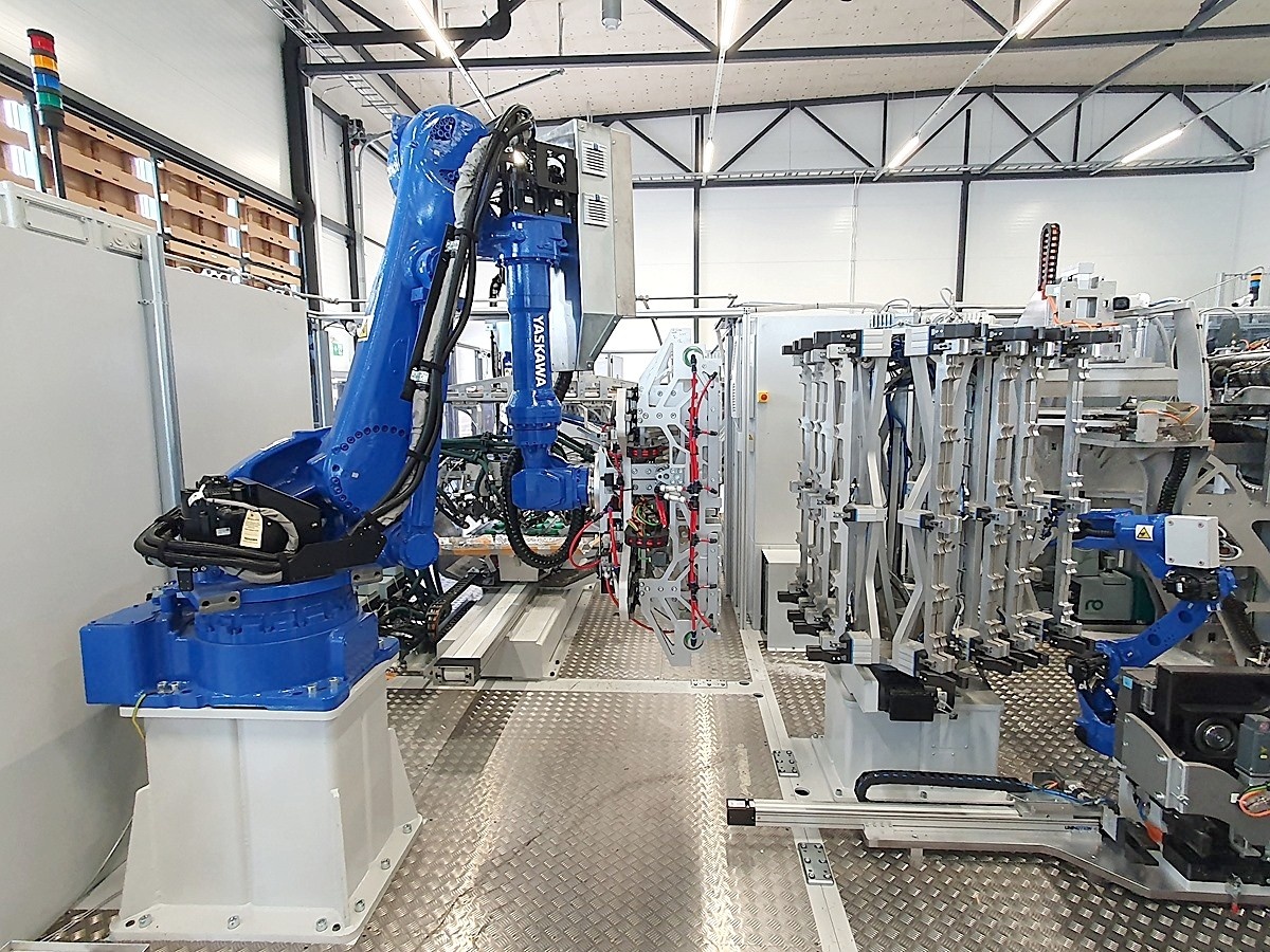 - linjasto on täysin automatisoitu, etäohjattava/-valvottava ja koostuu 10 Yaskawan teollisuusrobotista
