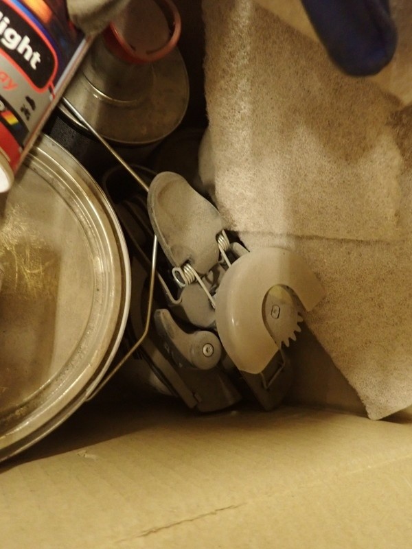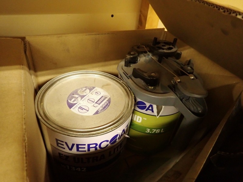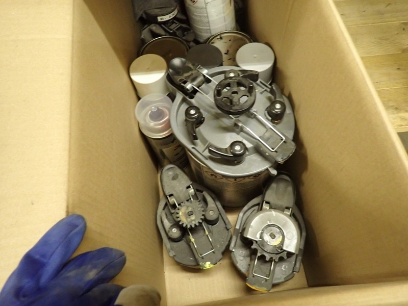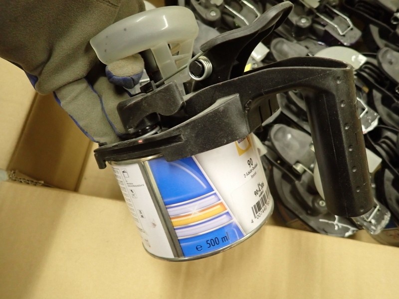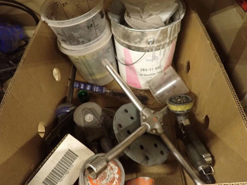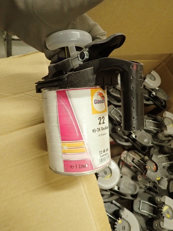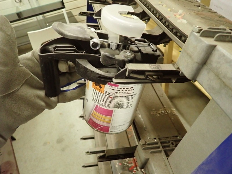 4. Ajoneuvomaalit kiinnitettynä sekoituskansissa. Maalit, kemikaalit.