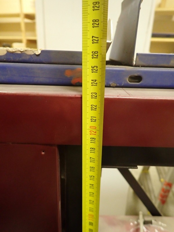 3. Sekoitushylly, kokonaispituus 180 cm, korkeus 123 cm (viininpunainen/musta hylly)
