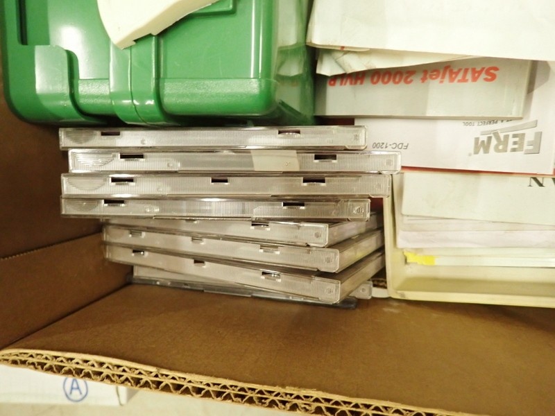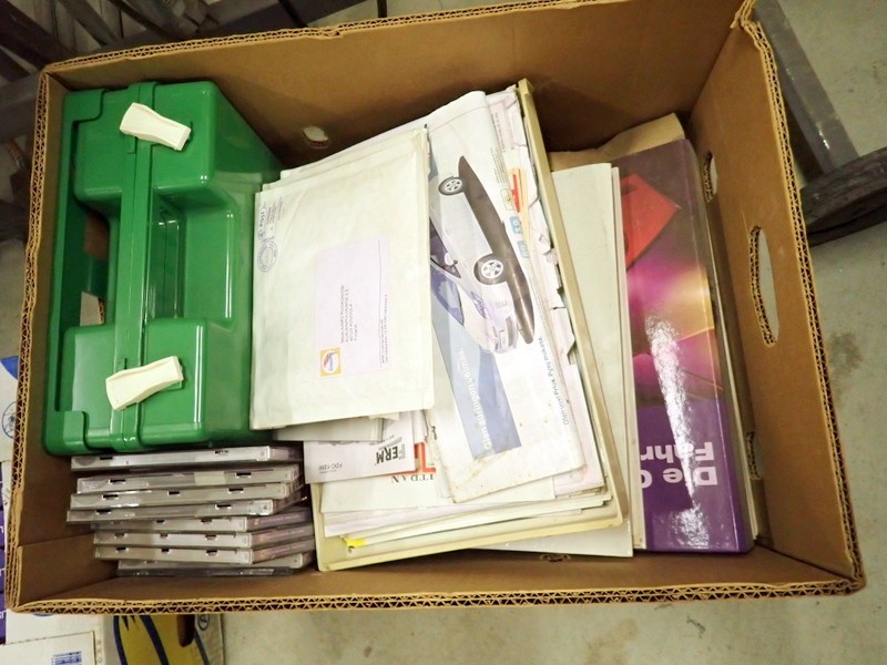 Väriluettelot ja CD-levyt kolmessa banaanilaatikossa