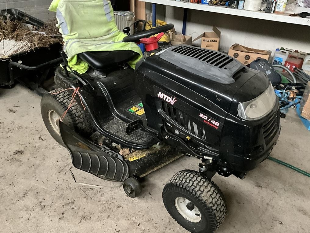 Myyntikohteet » 1. Ilmaristen Kukkatarhat Oy:n konkurssipesä, LIETO (2969735-8), 29.10.2025 » 02. Ajettava ruohonleikkuri MTD 20 / 42 Automatic + peräkärry