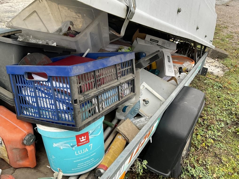 HUOM! Perävaunussa olevat tavarat kuuluvat myytävään kohteeseen. Renkaat tyhjät.