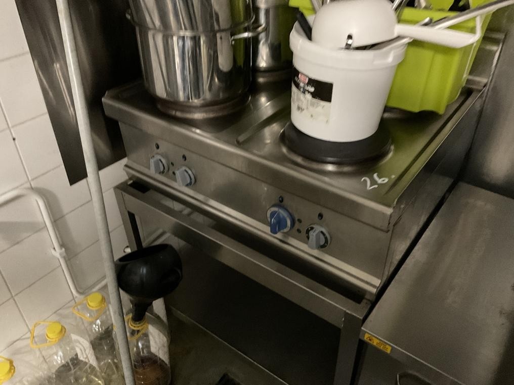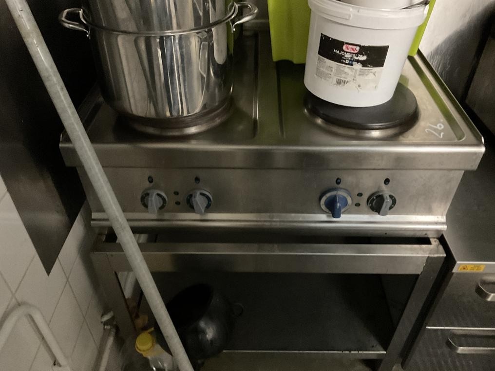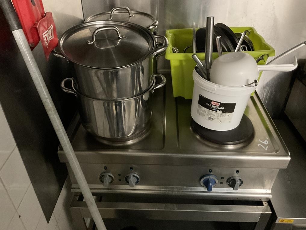 Myyntikohteet » 2. Jenoil Oy:n konkurssipesä, TURKU (2915929-3), 31.10.2025 » 26. Sähköliesi + jalusta, liedellä olevat kattilat ym. tarvikkeet