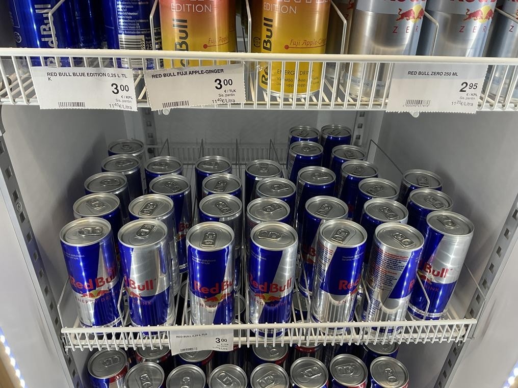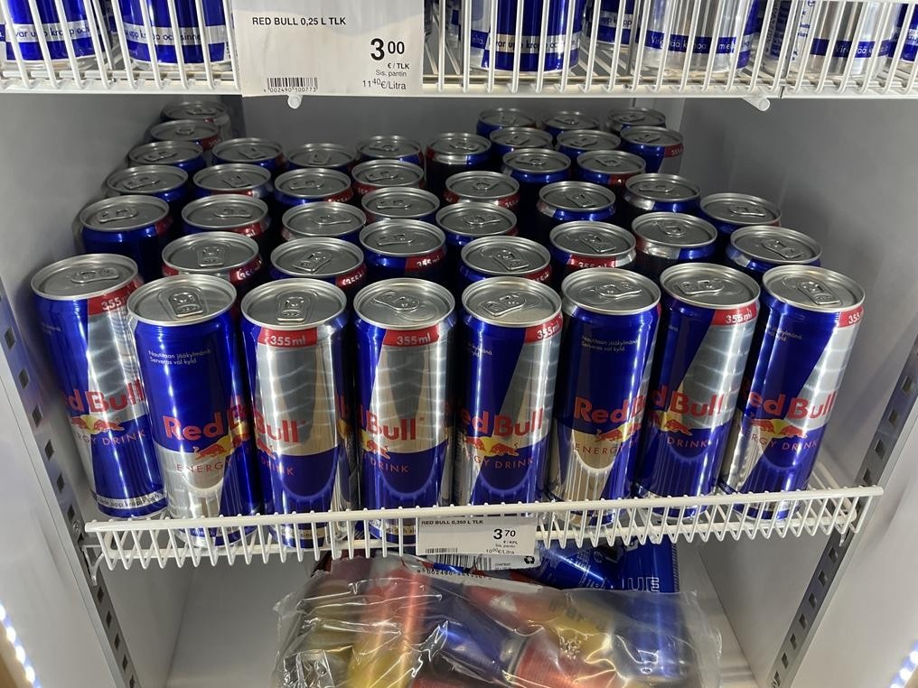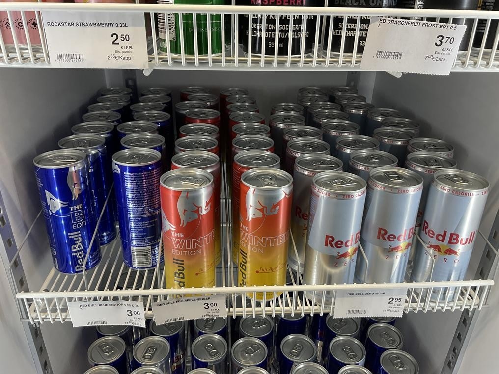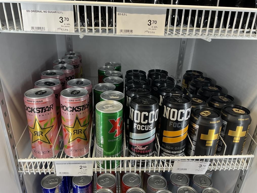 Kylmäkaapissa olevat energiajuomat yhteensä 190 kappaletta
