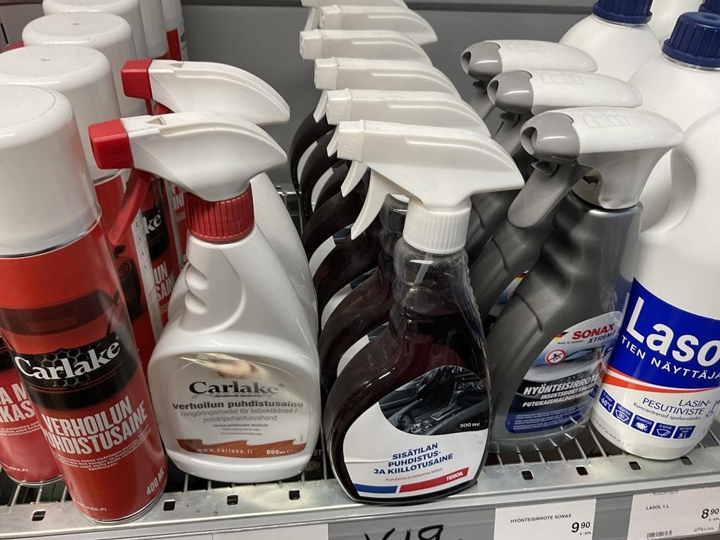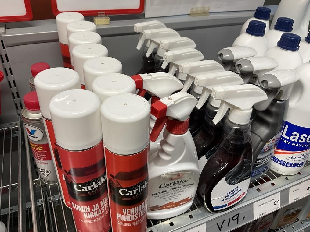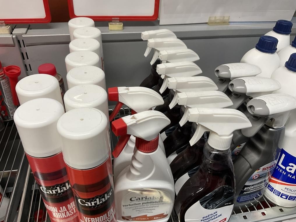Hyllyvälissä olevat autonhoitotuotteet, yhteensä 37 kappaletta