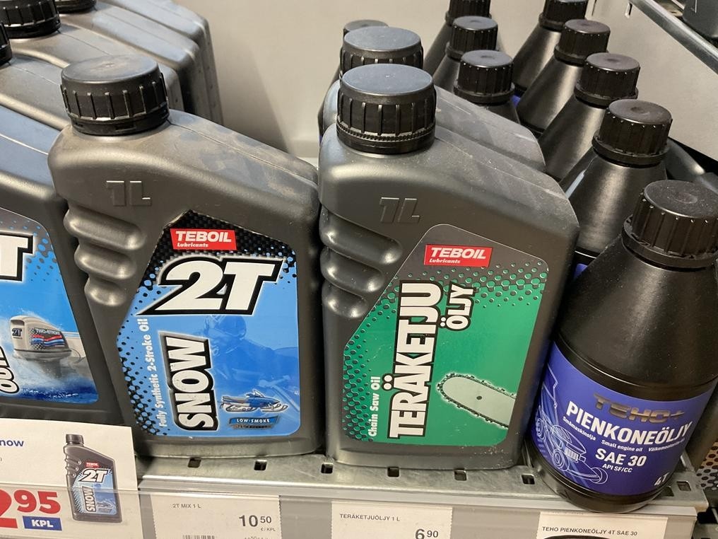 Teräketjuöljy – moottorisahojen teräketjun voiteluöljy.