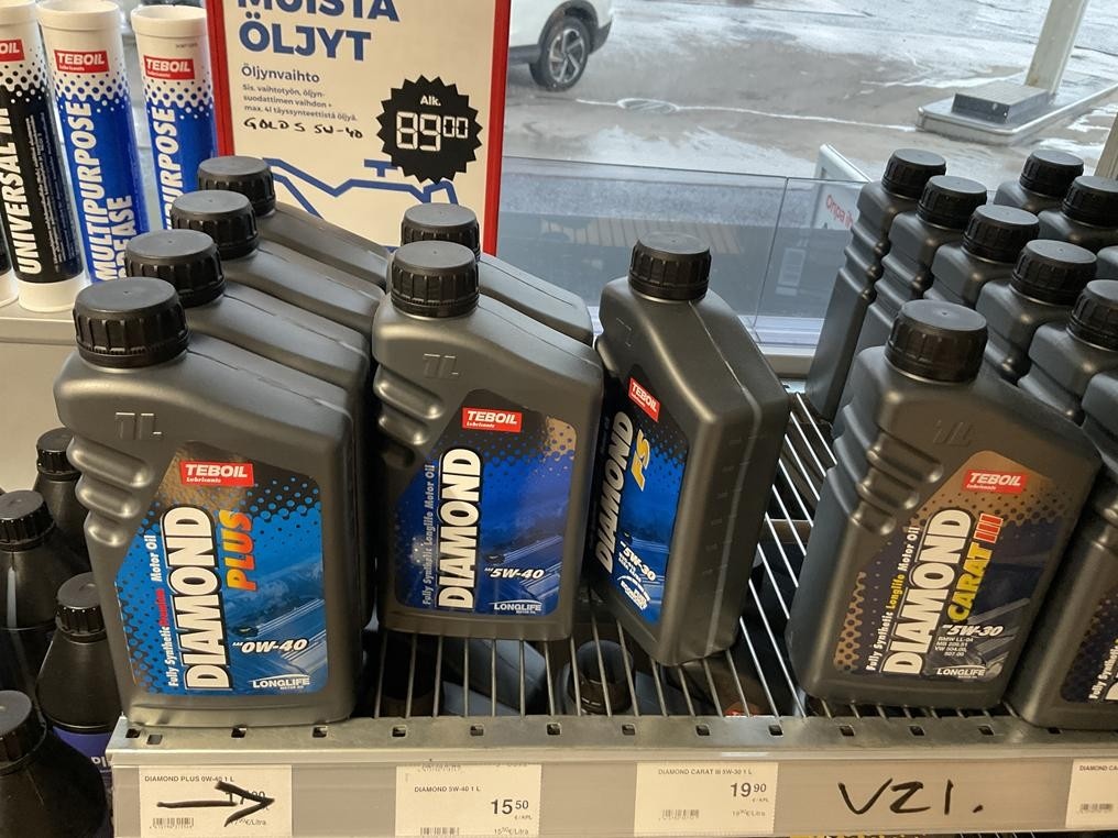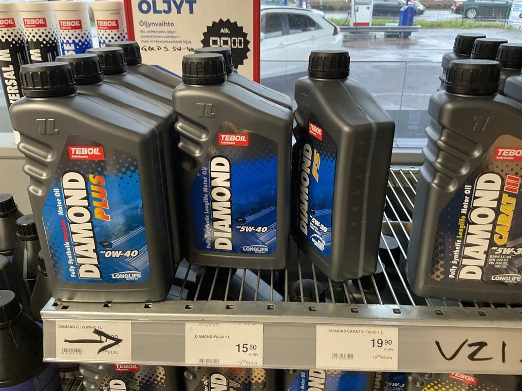 Myyntikohteet » 3. Jenoil Oy:n konkurssipesä, TURKU (2915929-3), 31.10.2025 » V21. Hyllytasolla olevat TEBOIL DIAMOND -MOOTTORIÖLJYT yhteensä 25 kappaletta, 1 litran pakkauksissa (mm. OW-40, 5W-40, OW30, OW-20)