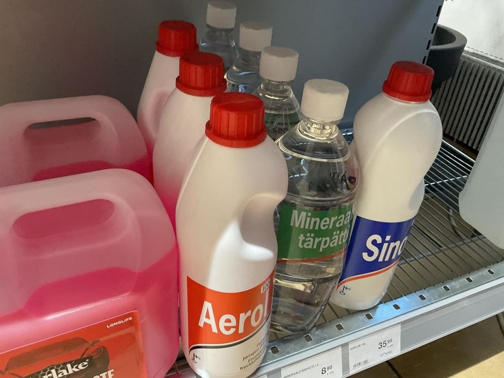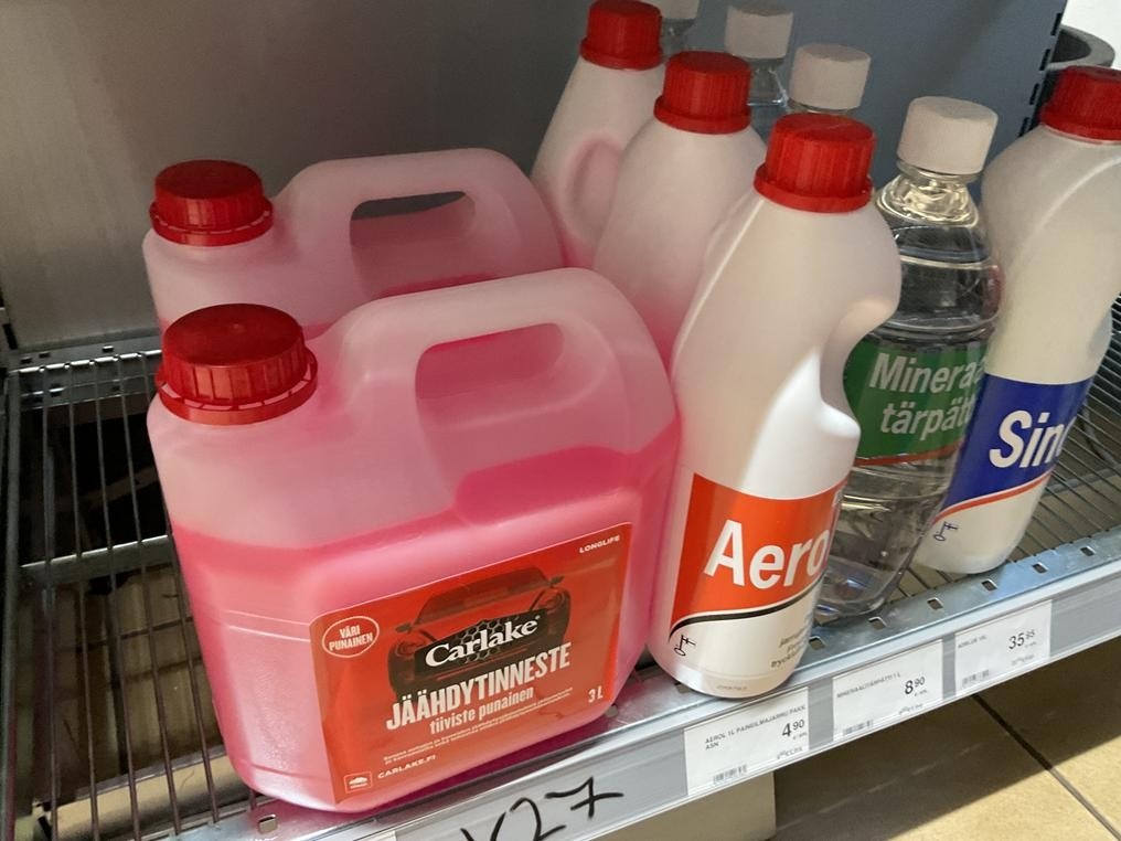 Myyntikohteet » 4. Jenoil Oy:n konkurssipesä, TURKU (2915929-3), 31.10.2025 » V27. Hyllyvälissä olevat jäähdytin- ym. nesteet 11 kappaletta
