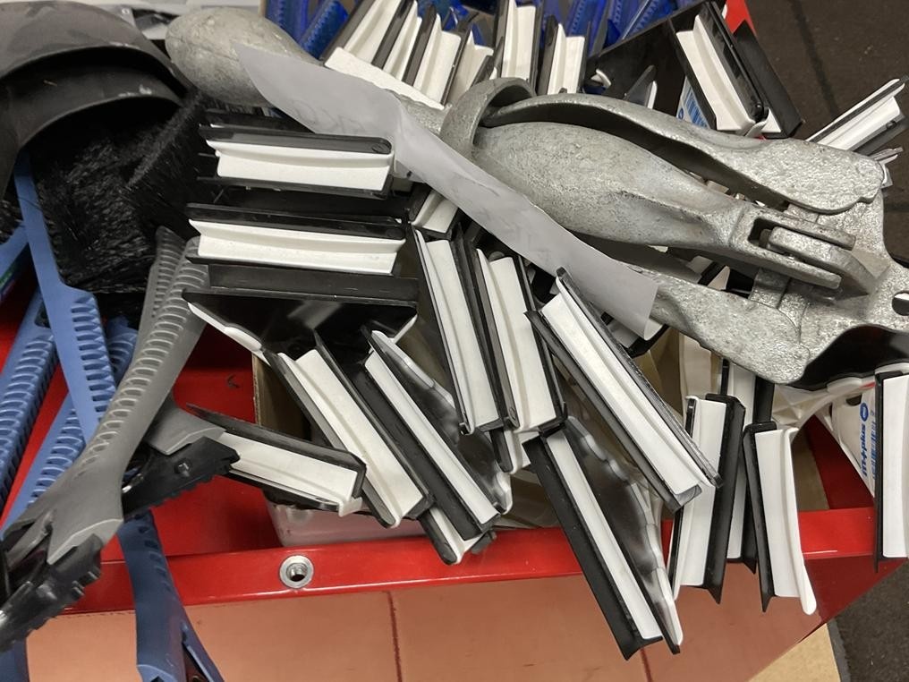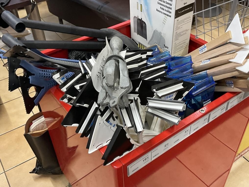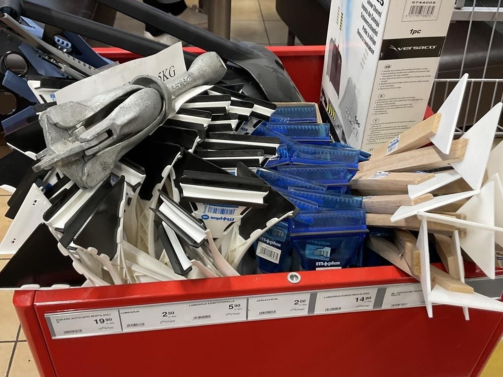 Myyntikohteet » 4. Jenoil Oy:n konkurssipesä, TURKU (2915929-3), 31.10.2025 » V39. Punaisessa myyntilaatikossa olevat pienet lumilapiot ja lumiharjat