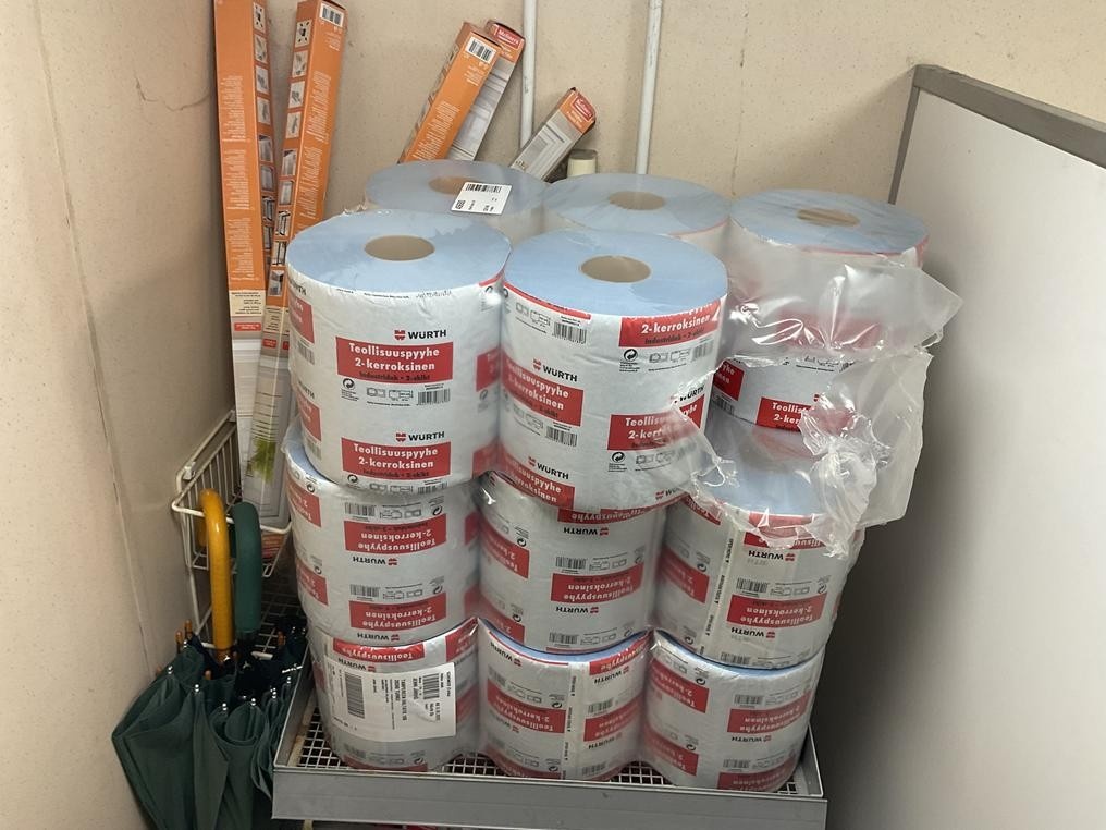 Myyntikohteet » 4. Jenoil Oy:n konkurssipesä, TURKU (2915929-3), 31.10.2025 » V43. Komerossa olevat teollisuuspyyhkeet Wurth