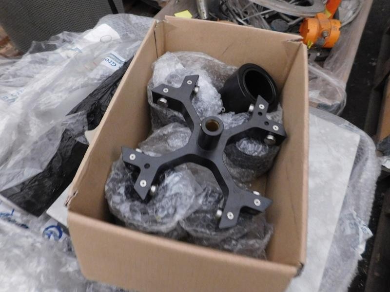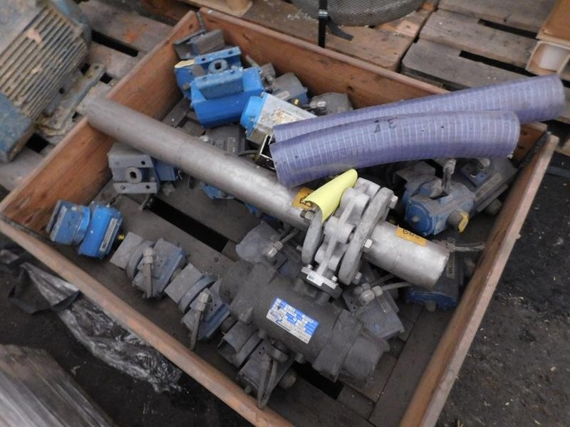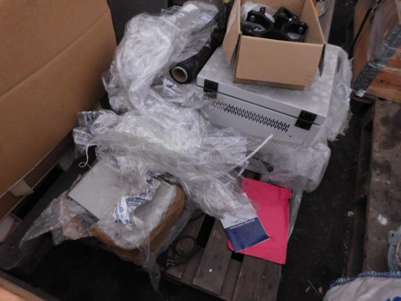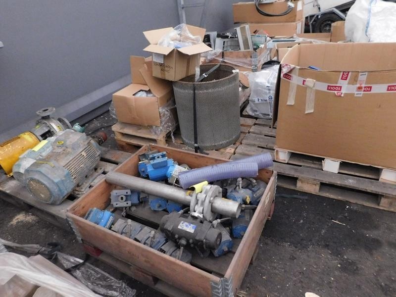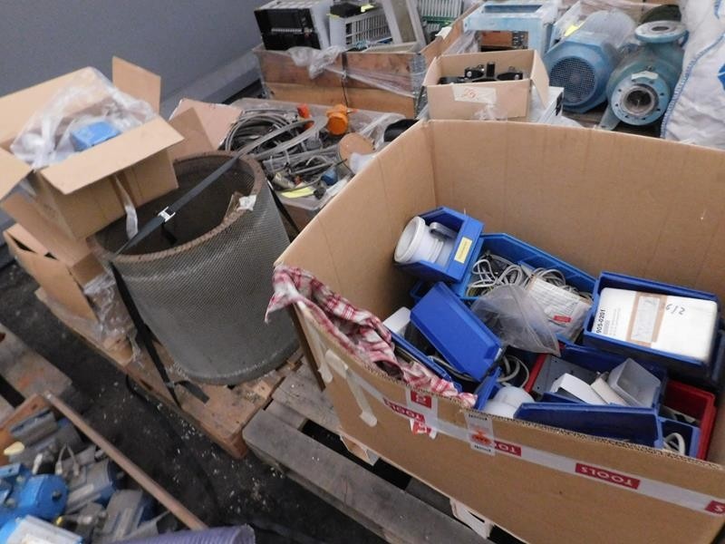 Erä labralaitteita, uudet sähkömoottorit, kaapelit ym. yht. 7 trukkilavaa.