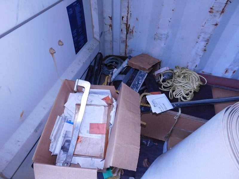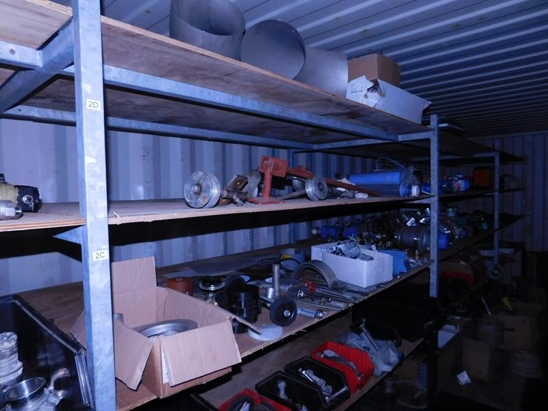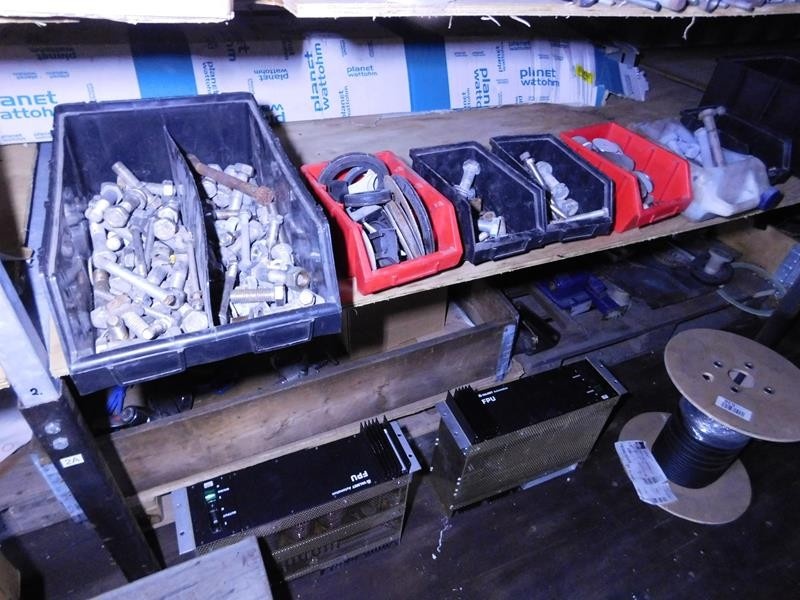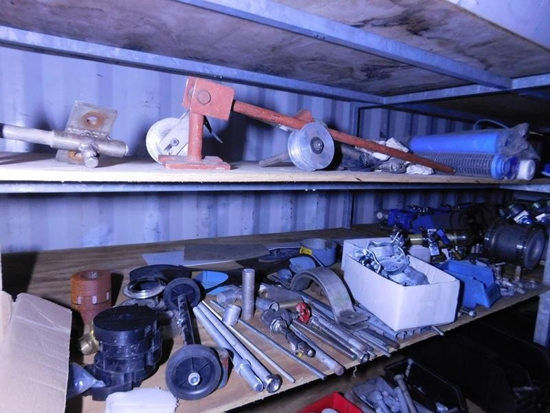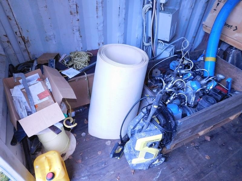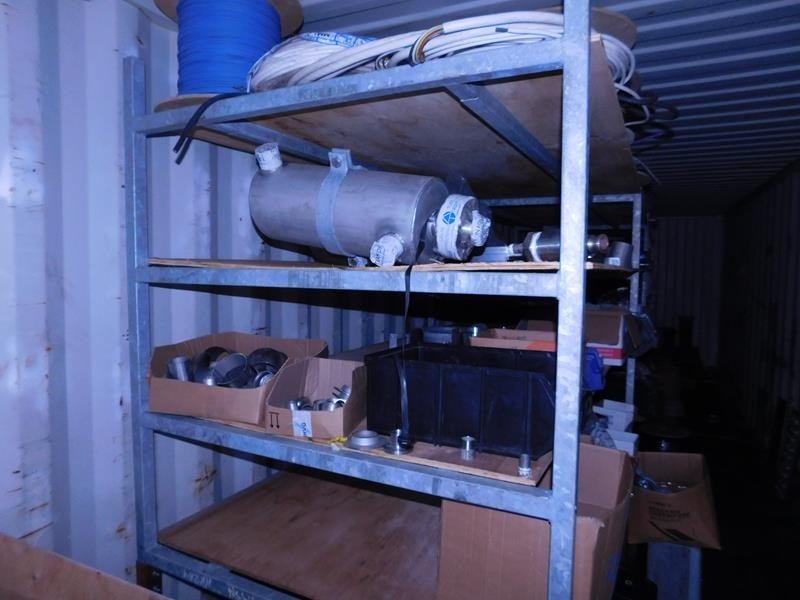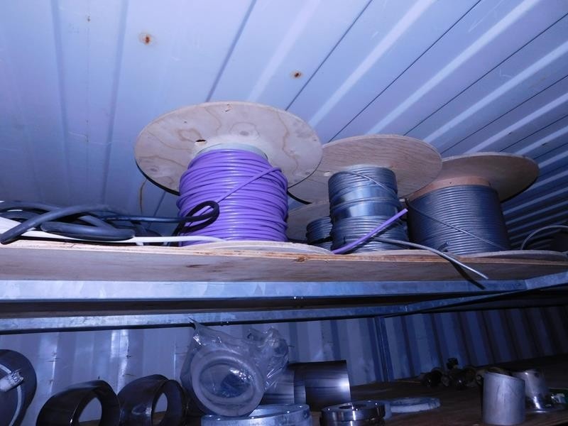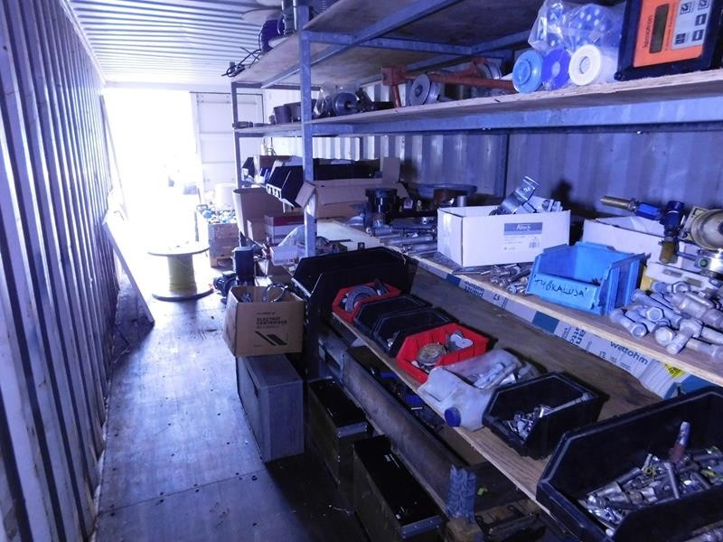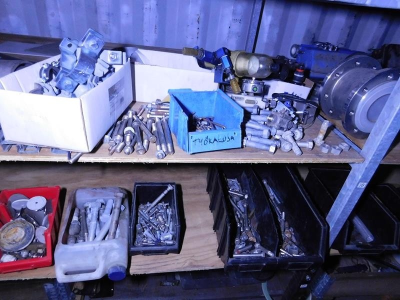 Sekalaiset varaosat ja tarvikkeet, kaapelit, pultit ym. kontissa. Kontti myydään erikseen myöhemmin.