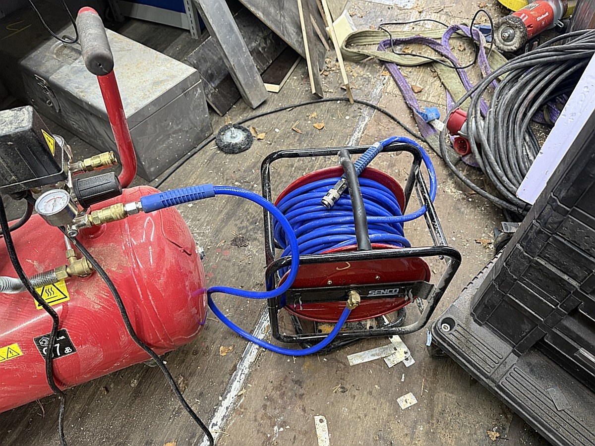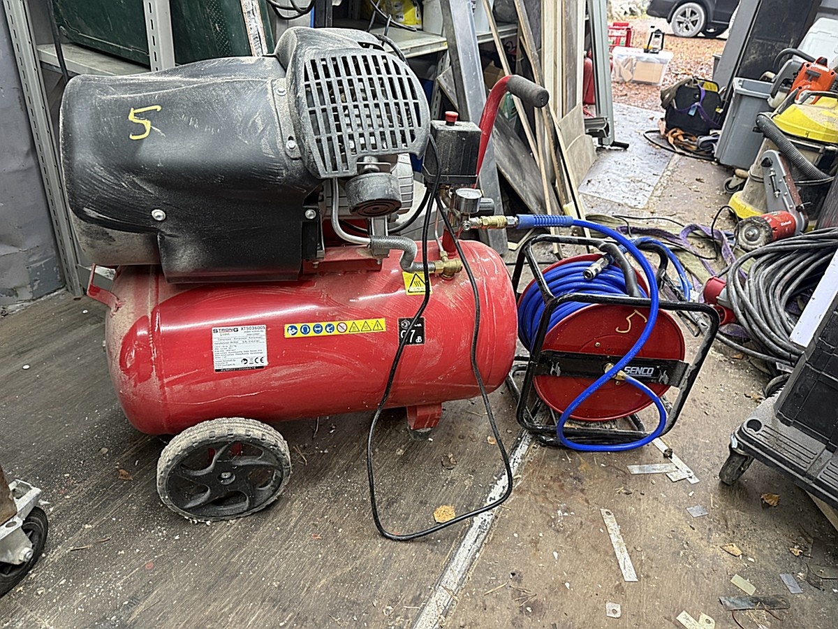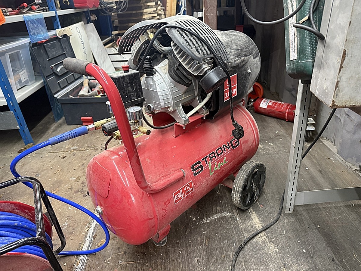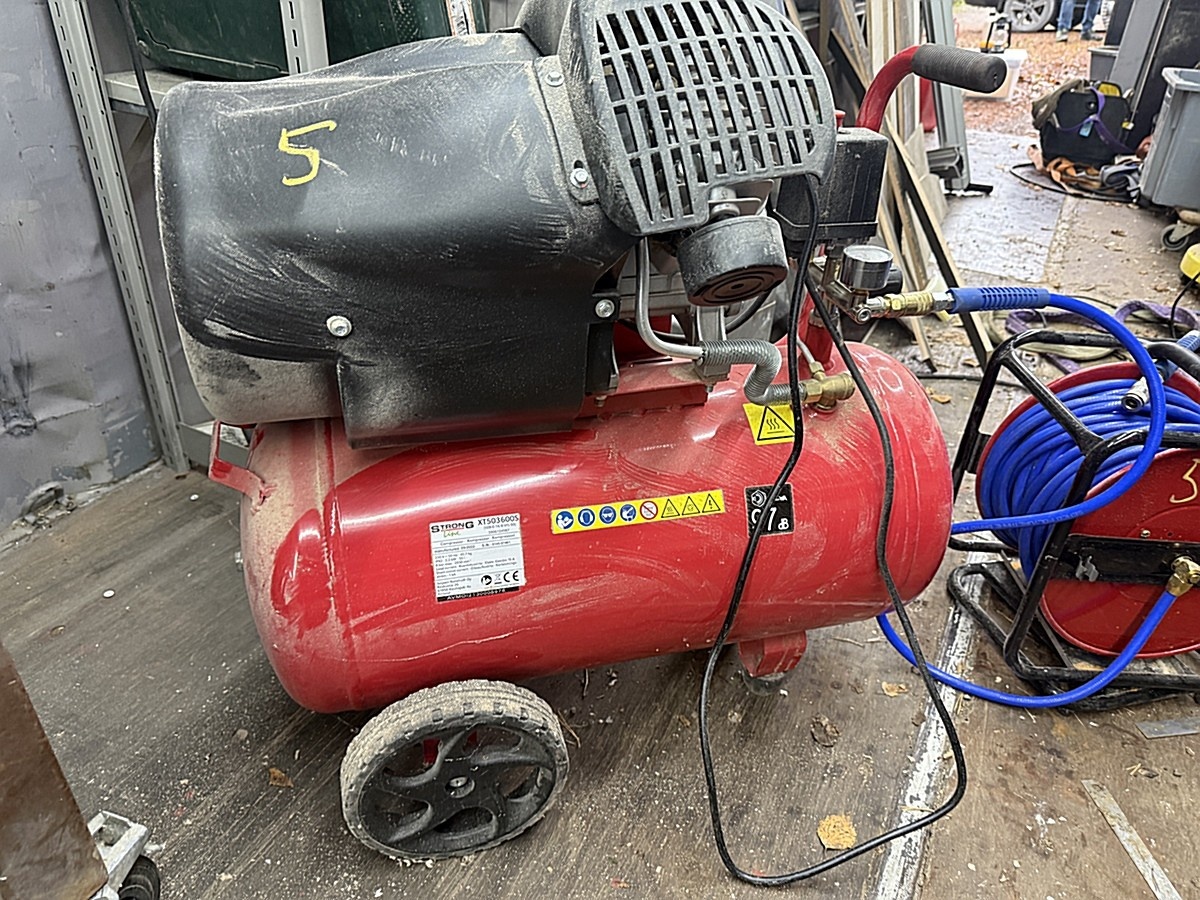 Myyntikohteet » UP Rakennus Tmi:n konkurssipesä (3155713-5), KÄMMENNIEMI, 05.11.2025 » 5. Kompressori STRONGLINE 50L ja Paineilmaletku kela SENCO