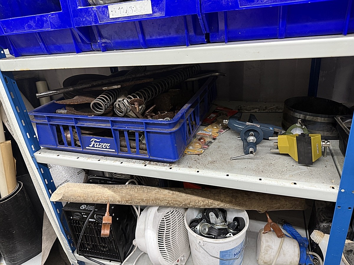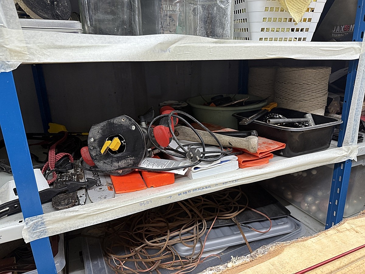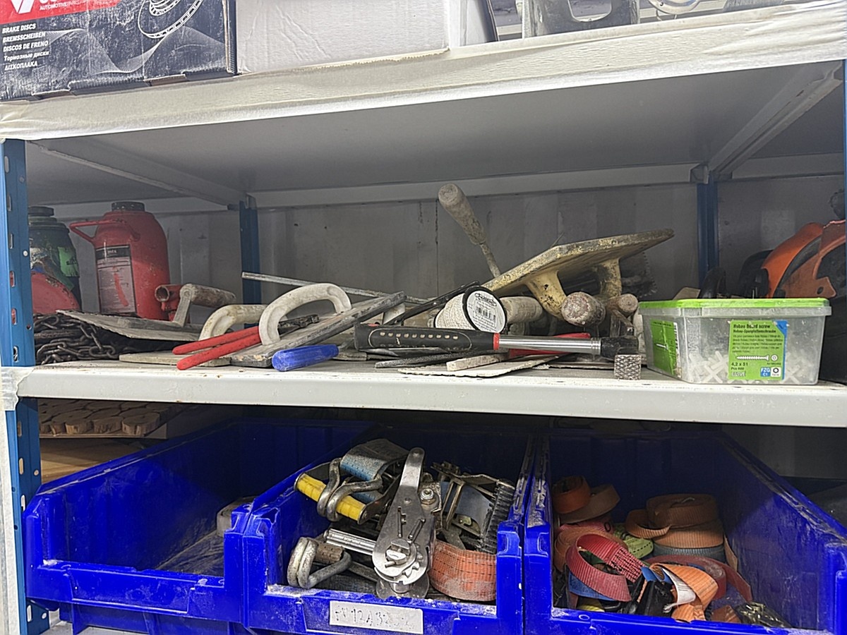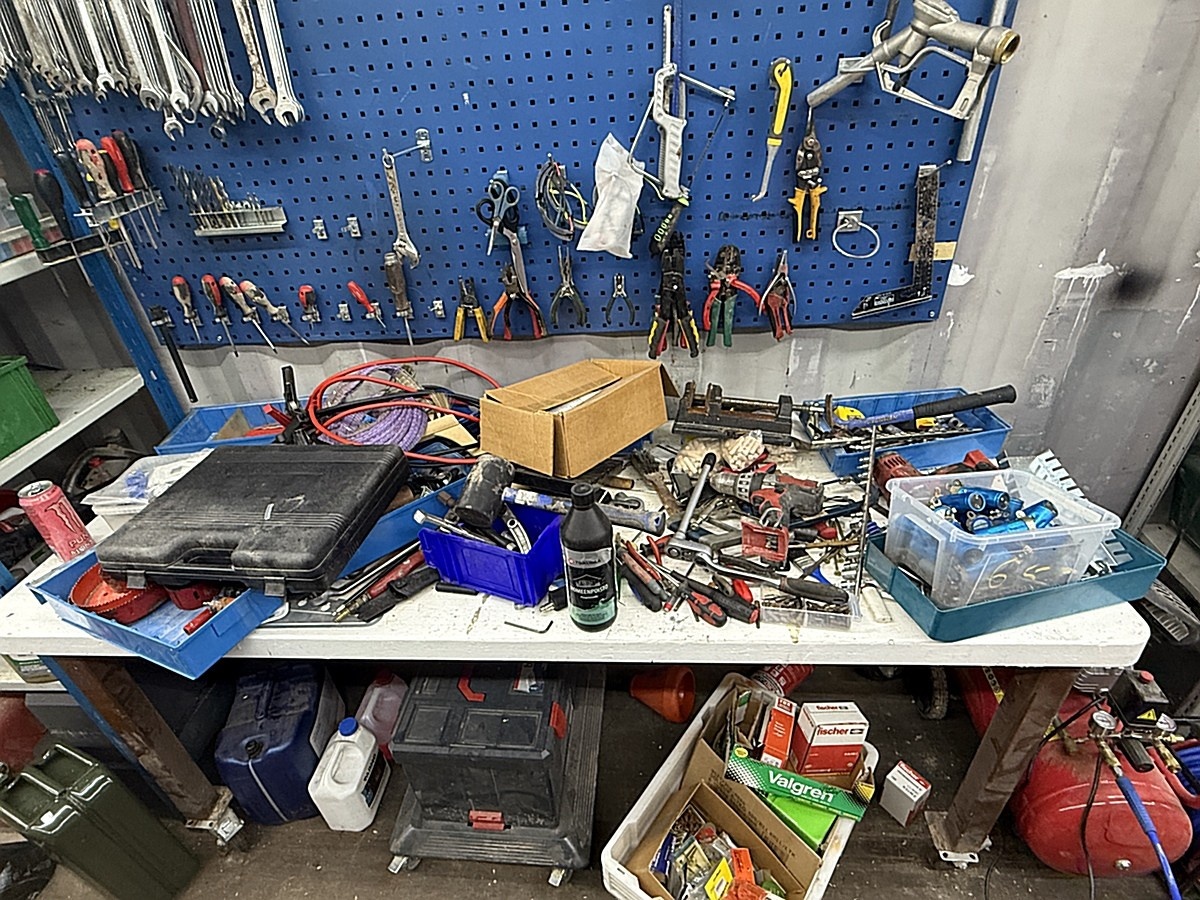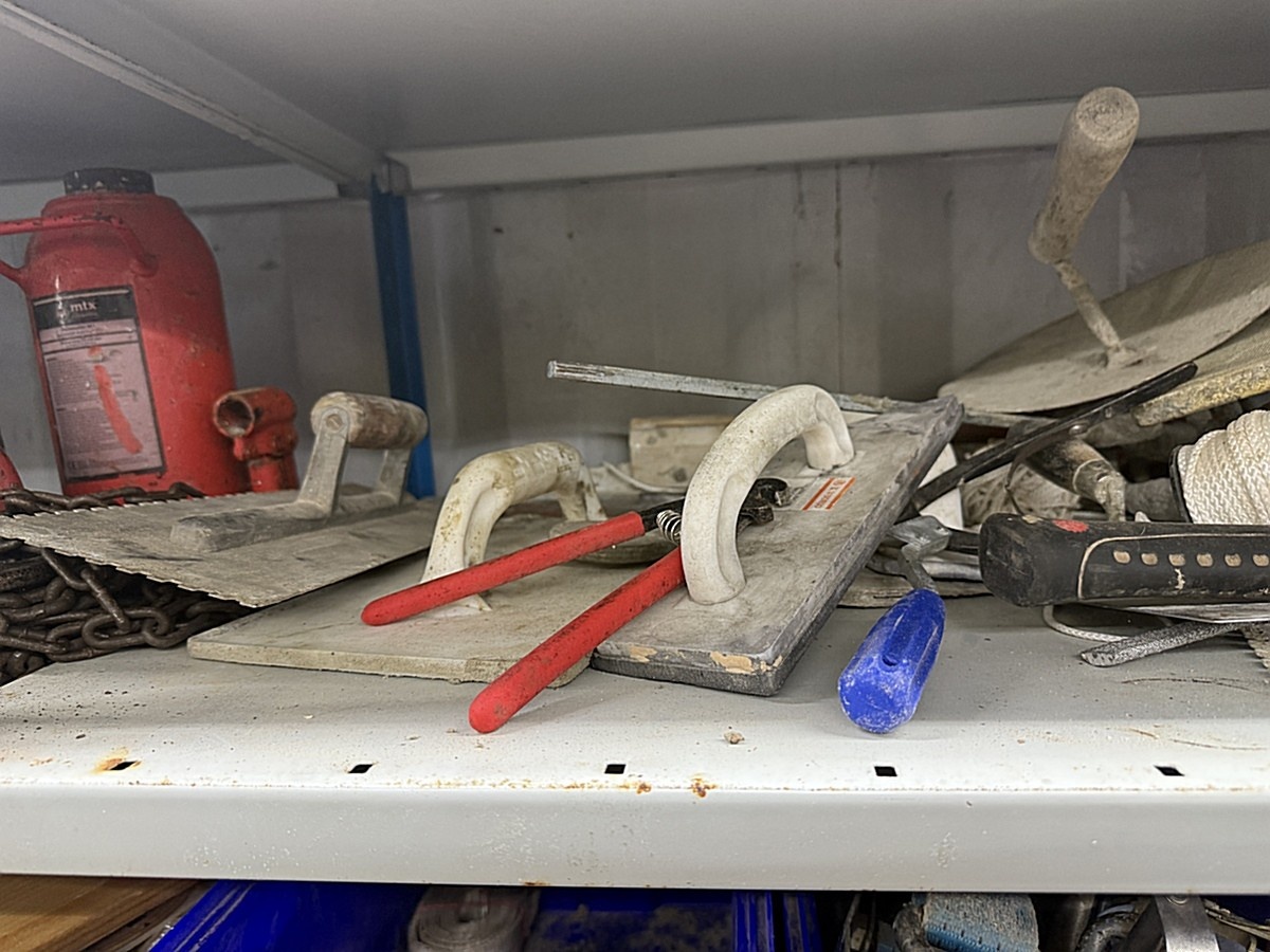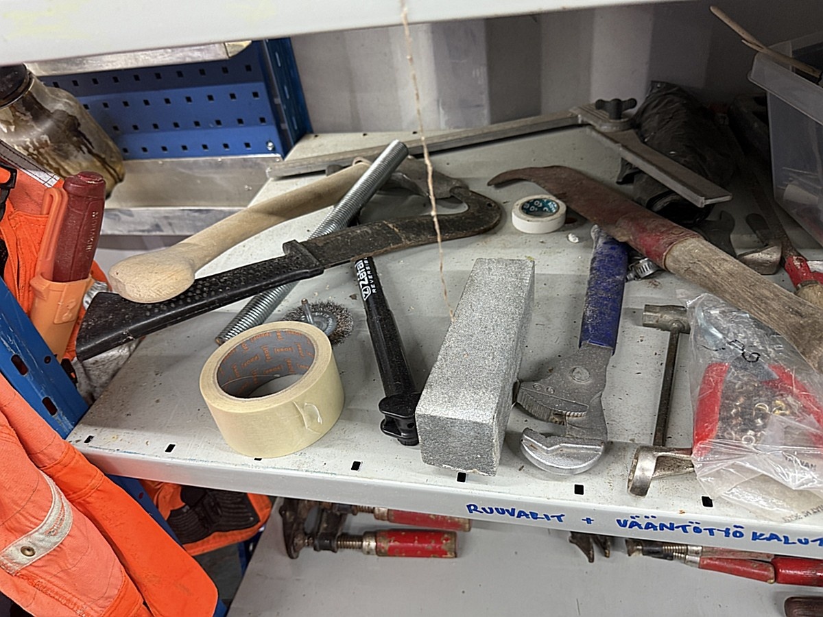 Myyntikohteet » UP Rakennus Tmi:n konkurssipesä (3155713-5), KÄMMENNIEMI, 05.11.2025 » 6.Hyllyn (5-hyllyväliä) ja työpöydän työkalut ja tavarat.