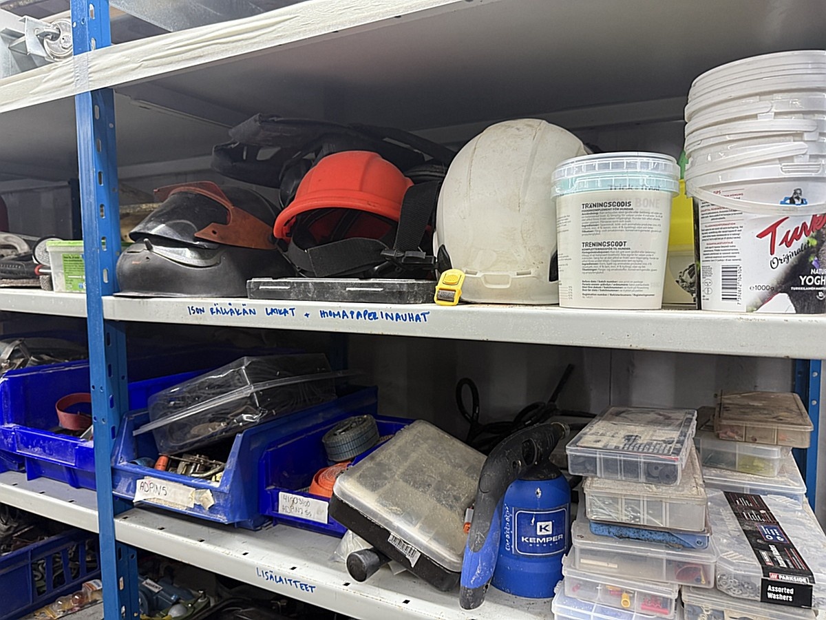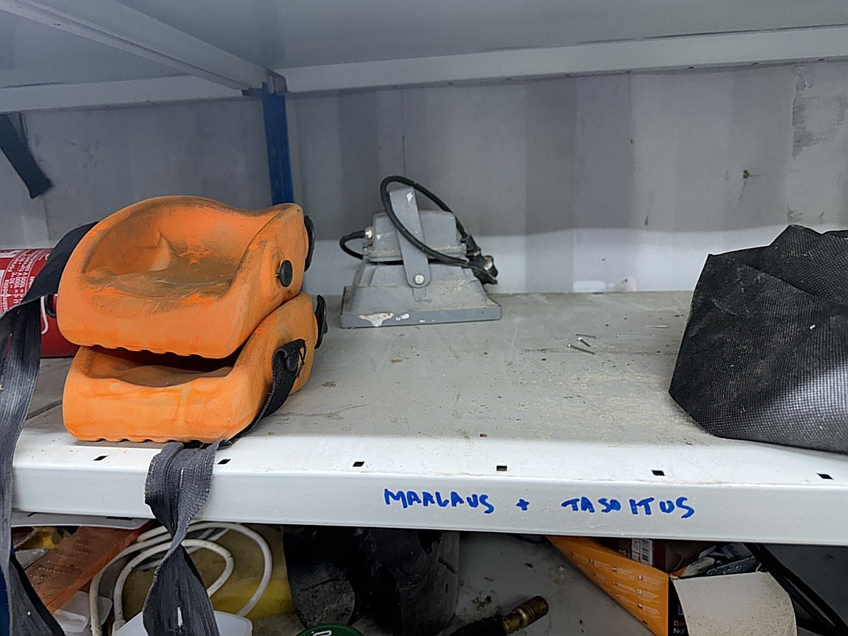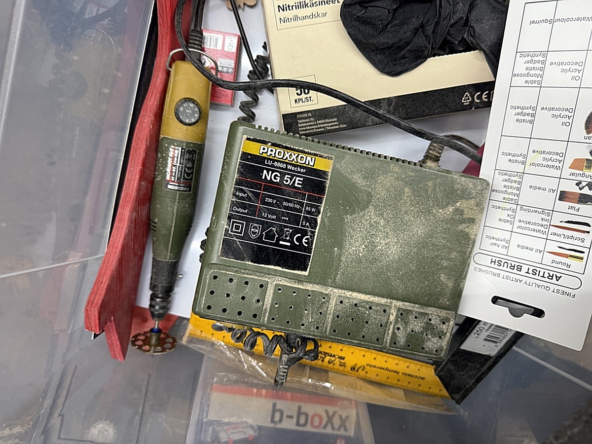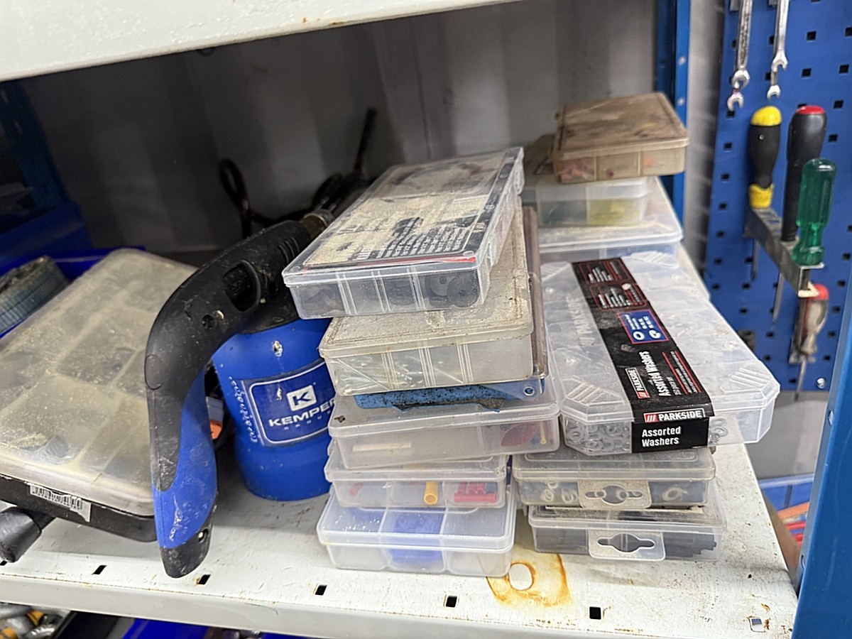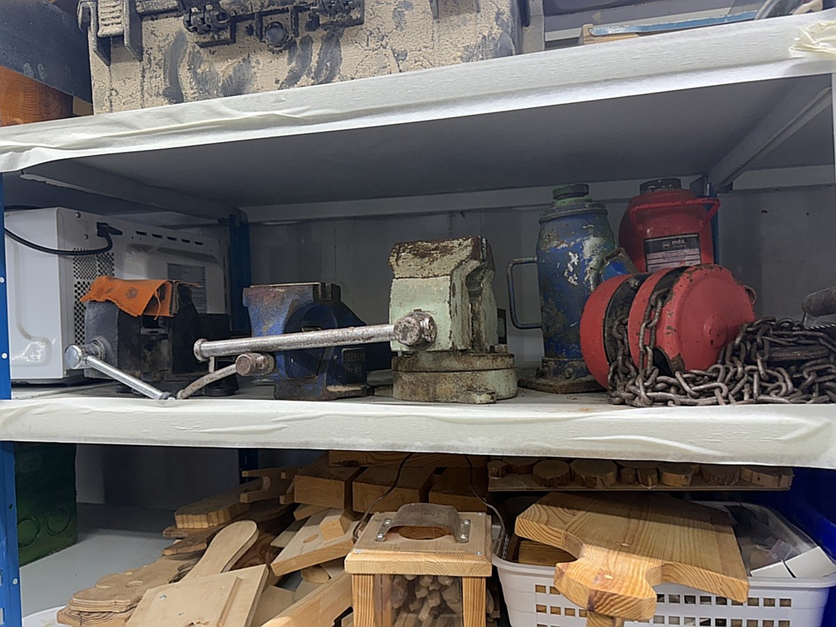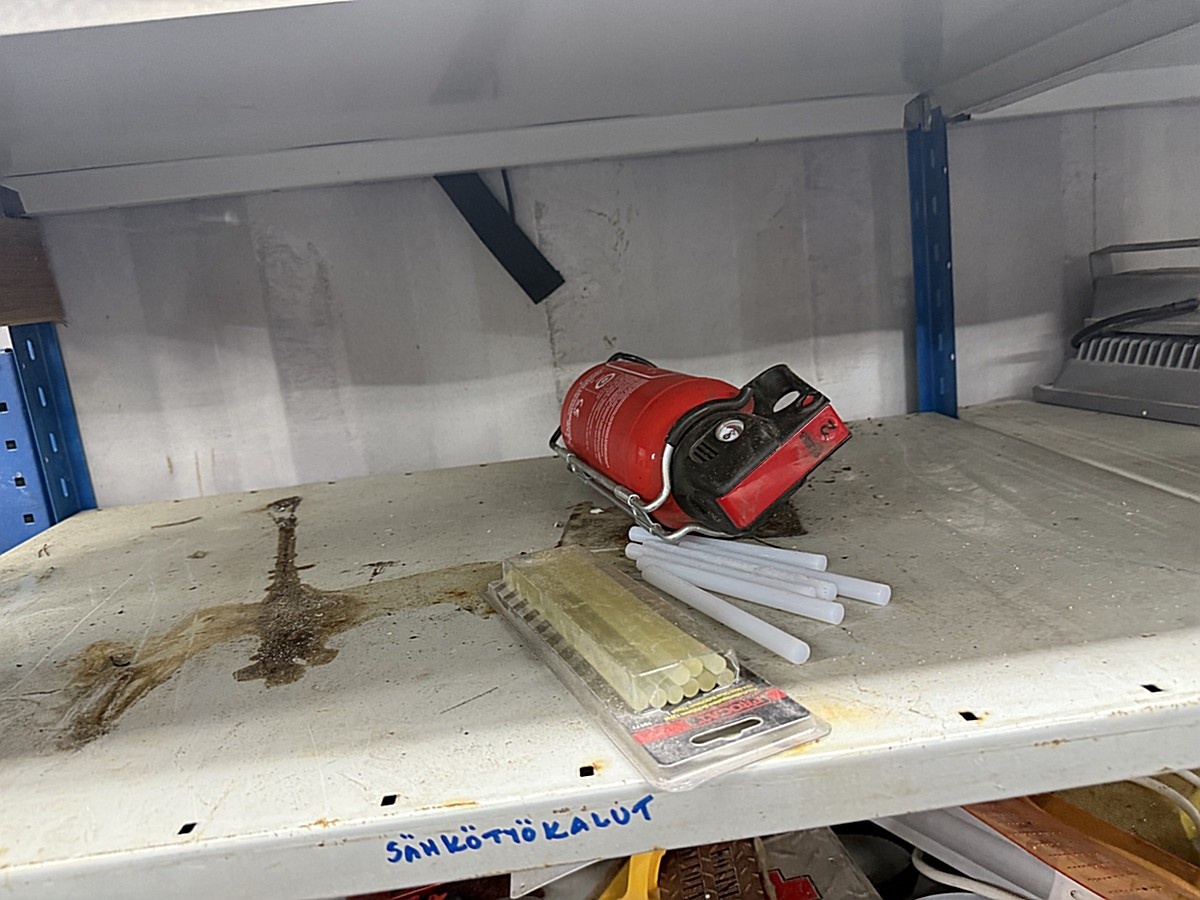Myyntikohteet » UP Rakennus Tmi:n konkurssipesä (3155713-5), KÄMMENNIEMI, 05.11.2025 » 6.Hyllyn (5-hyllyväliä) ja työpöydän työkalut ja tavarat.