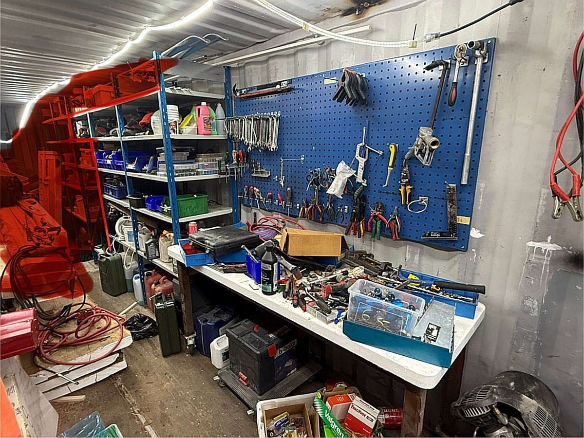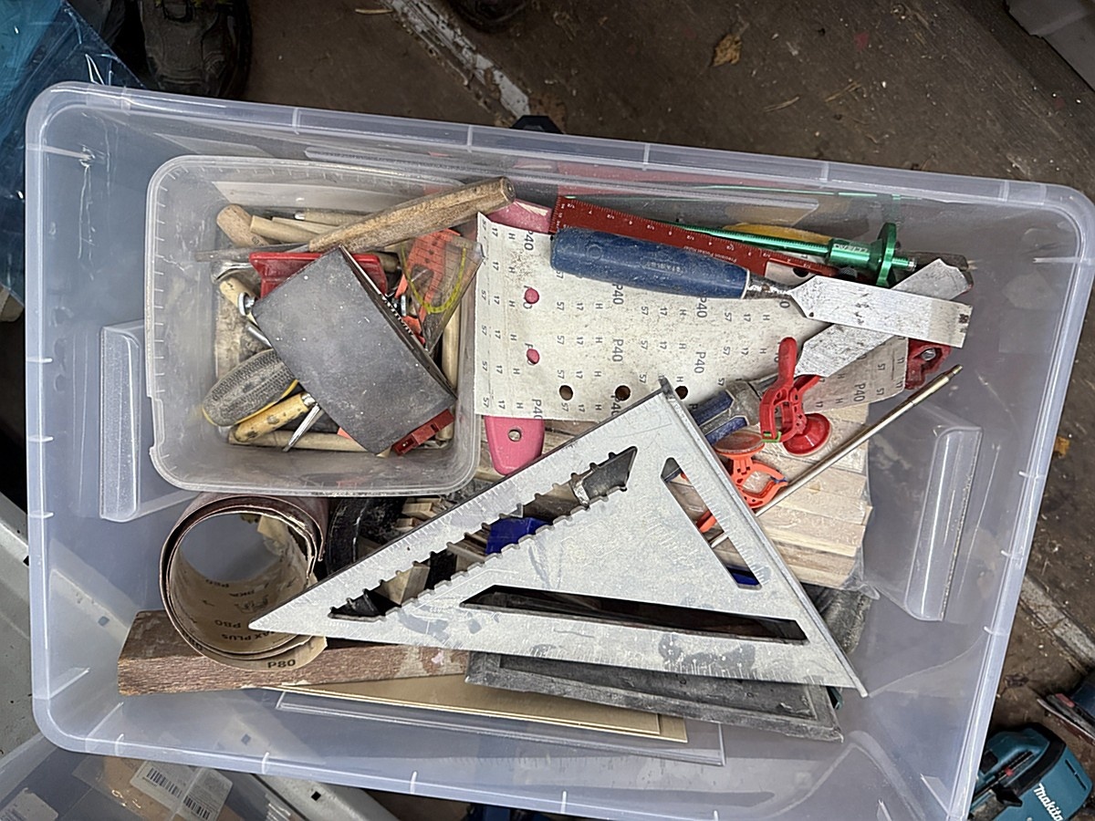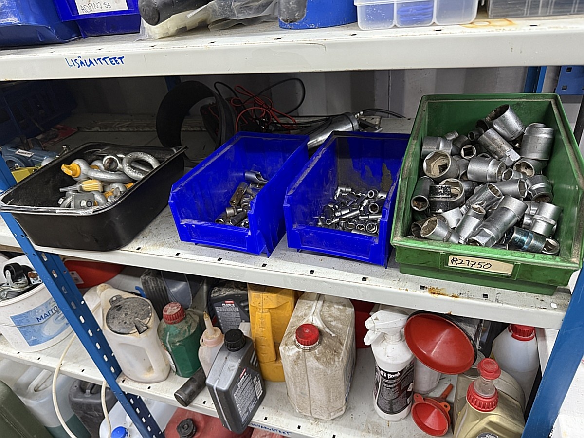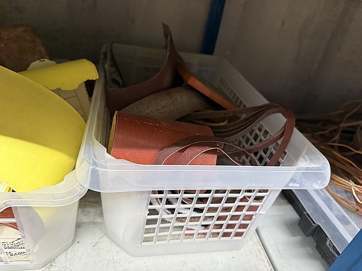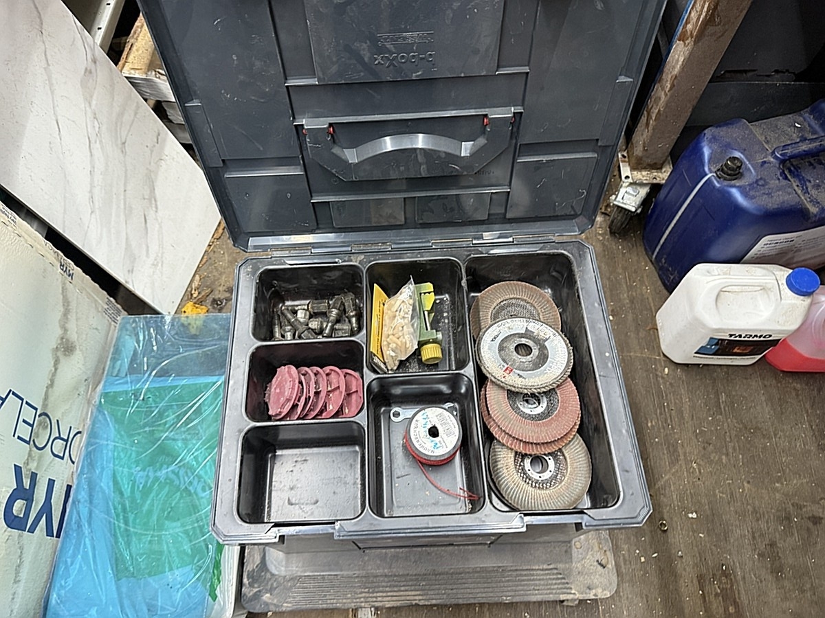 Myyntikohteet » UP Rakennus Tmi:n konkurssipesä (3155713-5), KÄMMENNIEMI, 05.11.2025 » 6.Hyllyn (5-hyllyväliä) ja työpöydän työkalut ja tavarat.