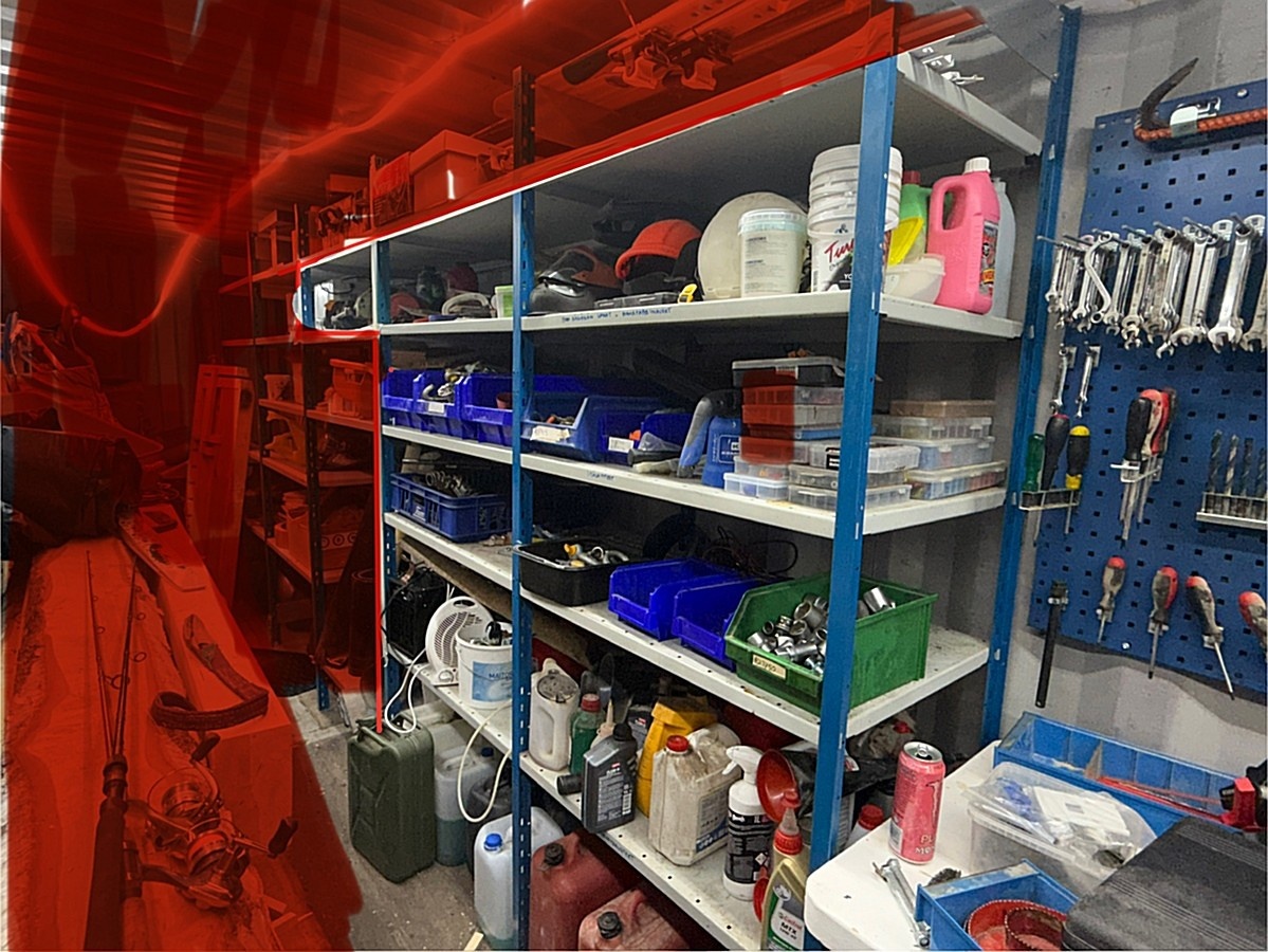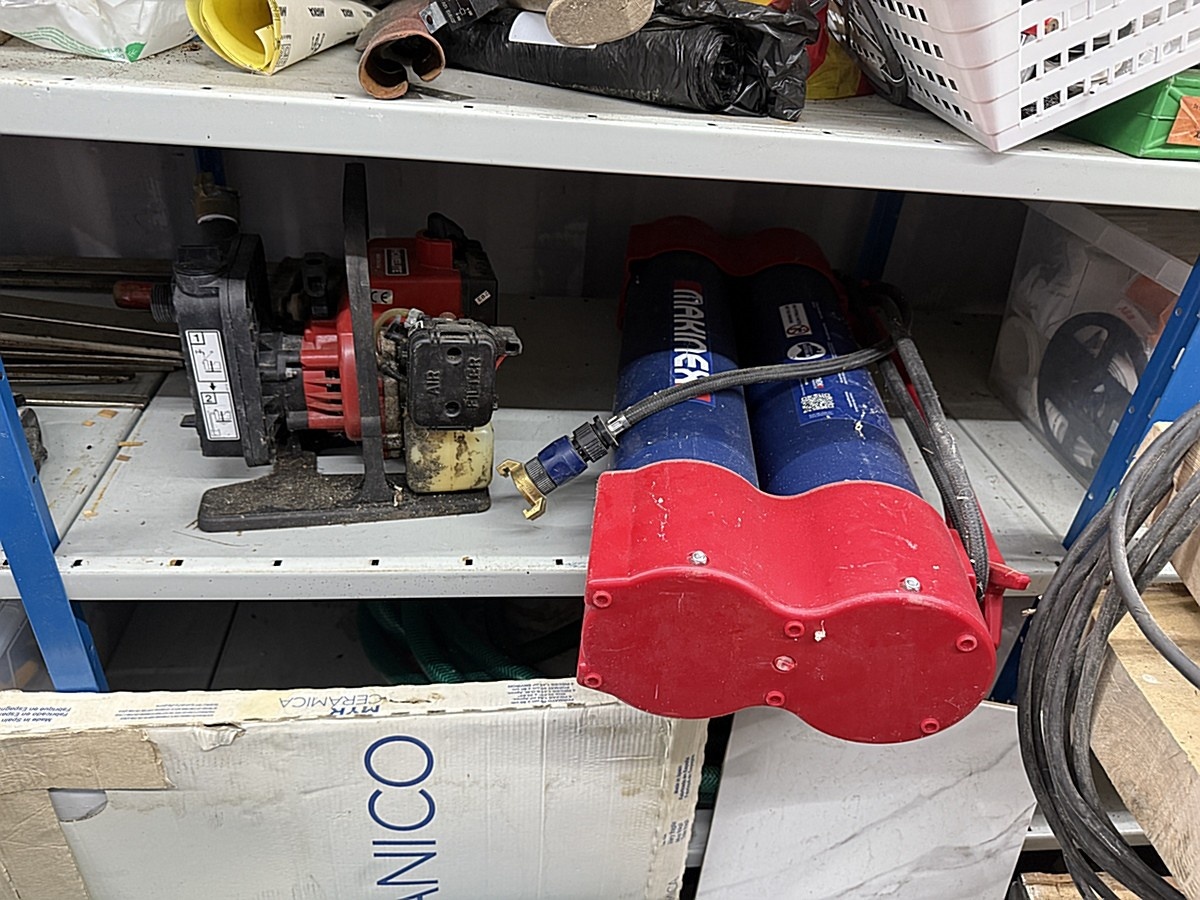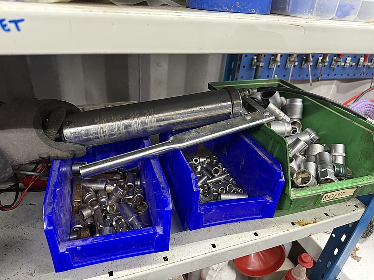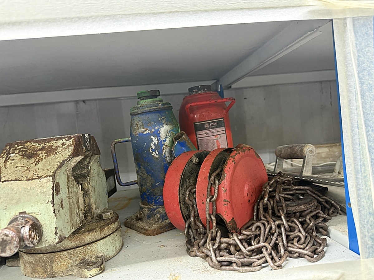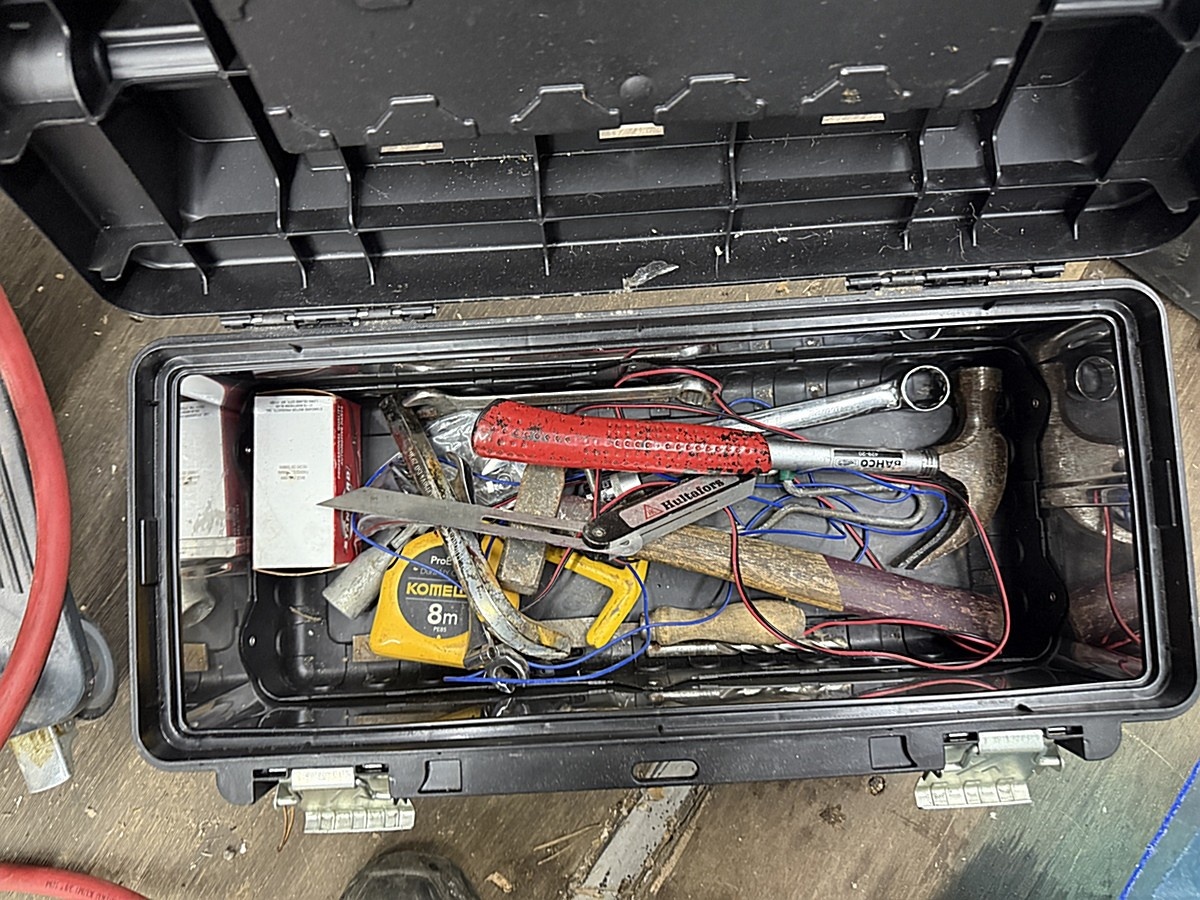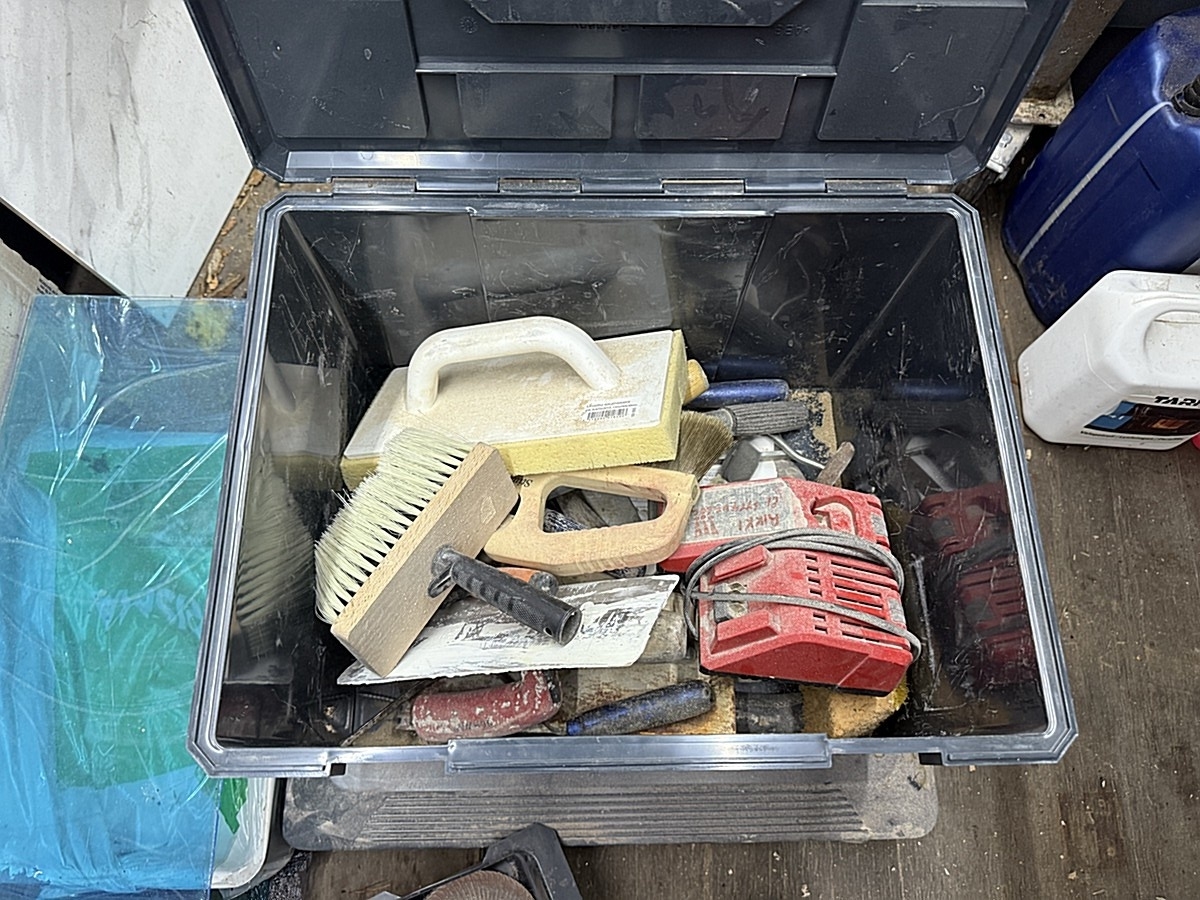 Myyntikohteet » UP Rakennus Tmi:n konkurssipesä (3155713-5), KÄMMENNIEMI, 05.11.2025 » 6.Hyllyn (5-hyllyväliä) ja työpöydän työkalut ja tavarat.