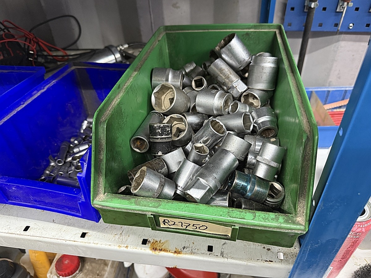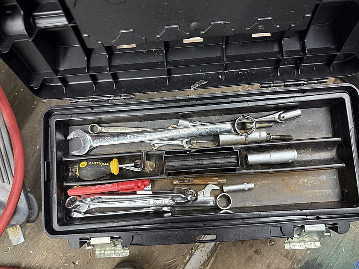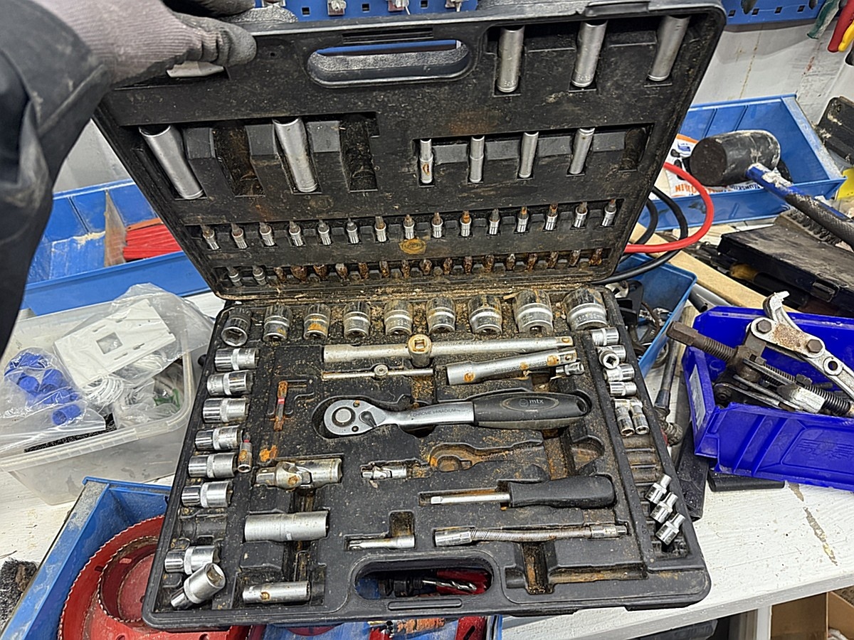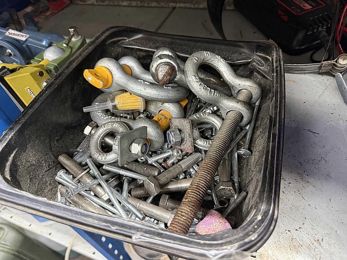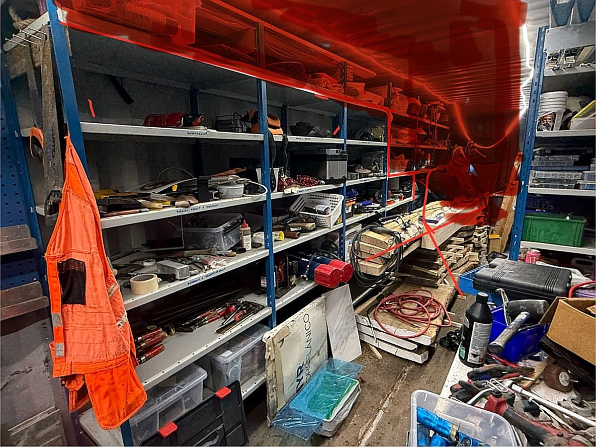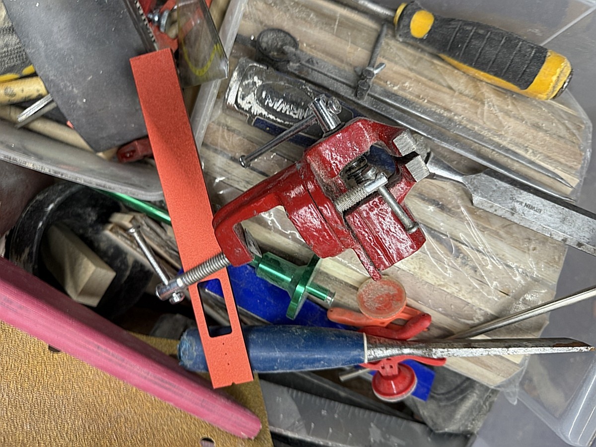 Myyntikohteet » UP Rakennus Tmi:n konkurssipesä (3155713-5), KÄMMENNIEMI, 05.11.2025 » 6.Hyllyn (5-hyllyväliä) ja työpöydän työkalut ja tavarat.