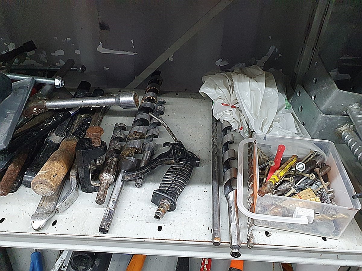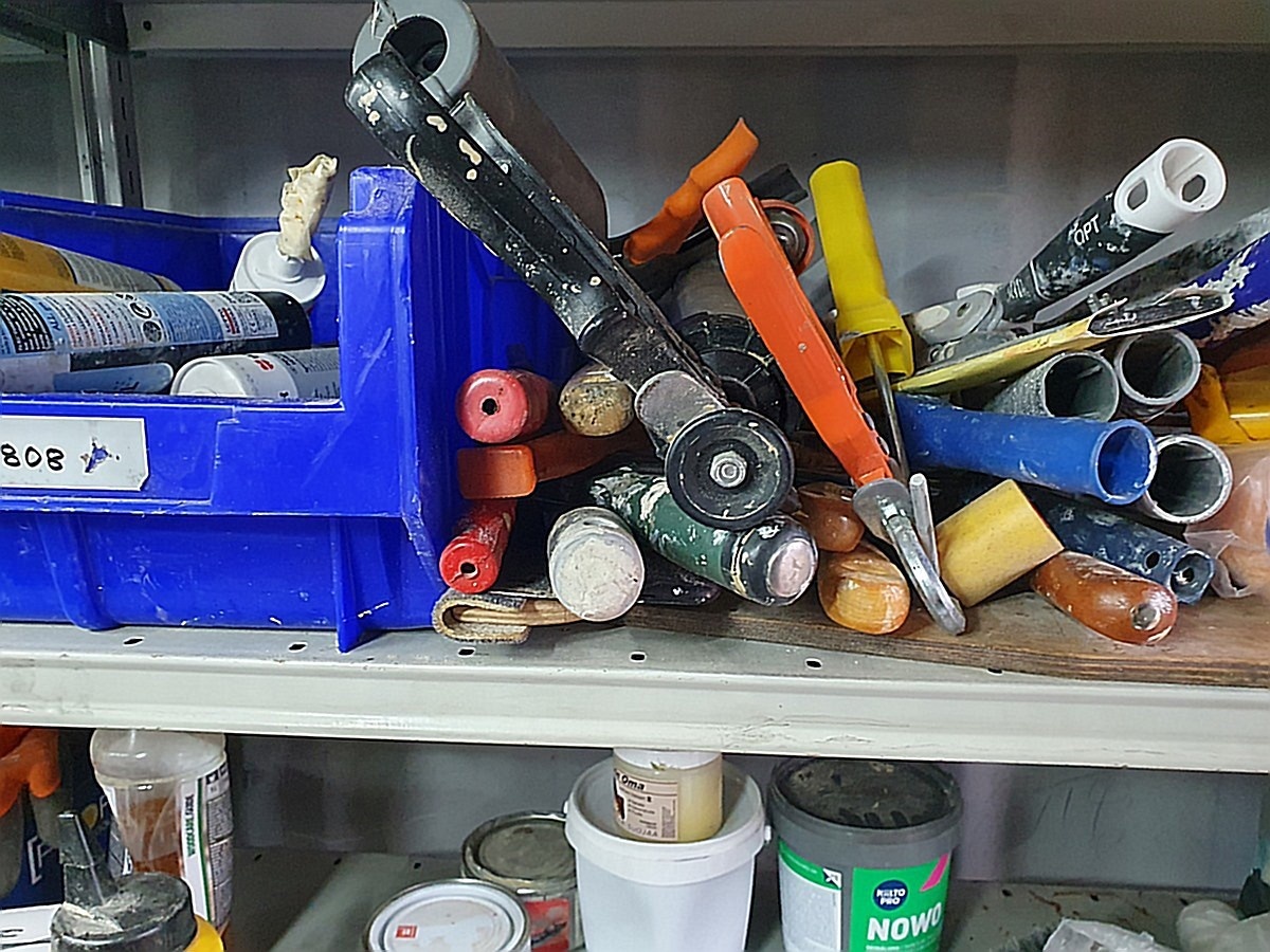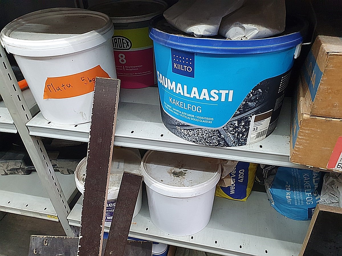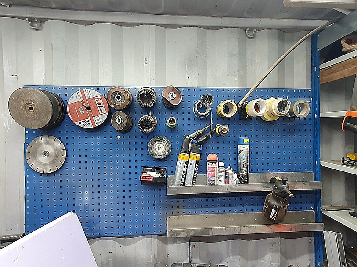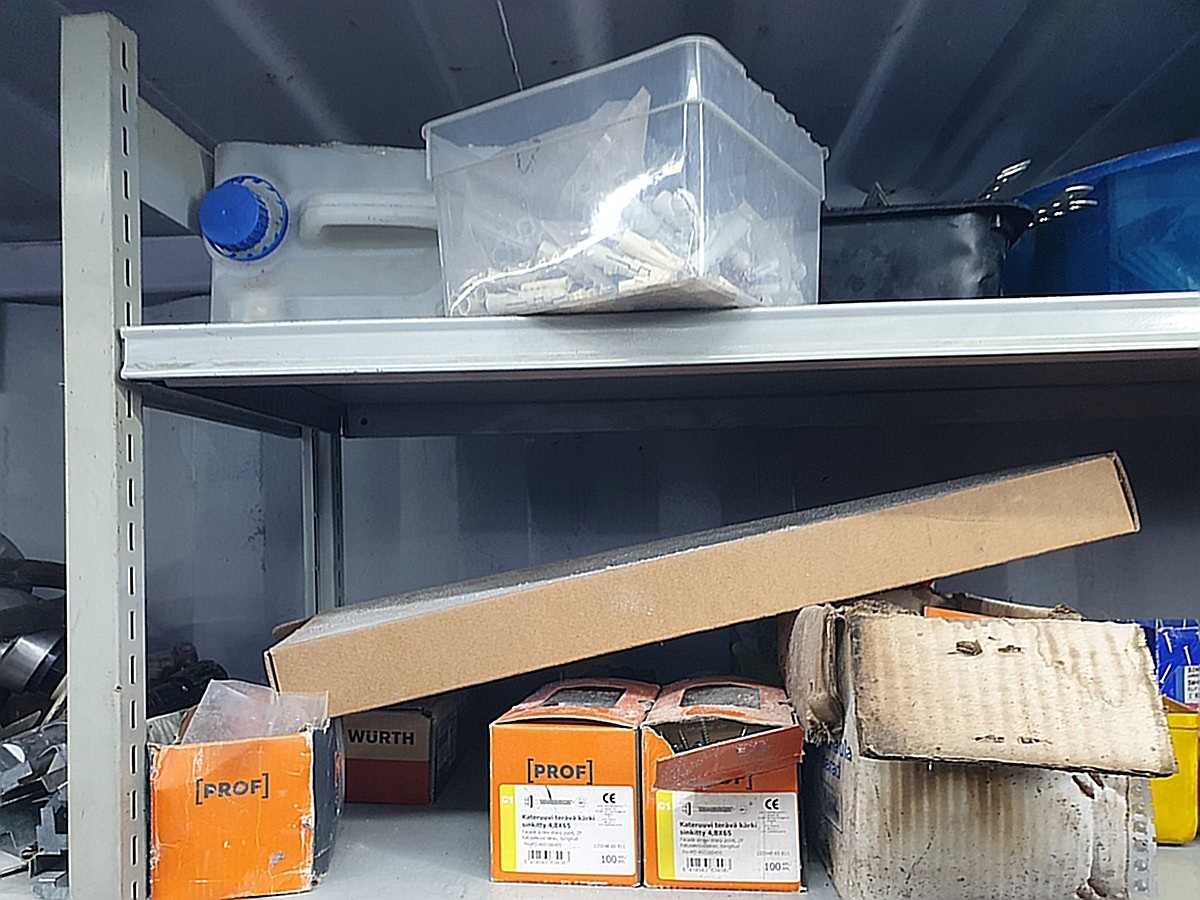 Myyntikohteet » UP Rakennus Tmi:n konkurssipesä (3155713-5), KÄMMENNIEMI, 05.11.2025 » 8. Hyllyn tavarat ja hyllyt (4 hyllyväliä) sekä työkalutaulu (8B)