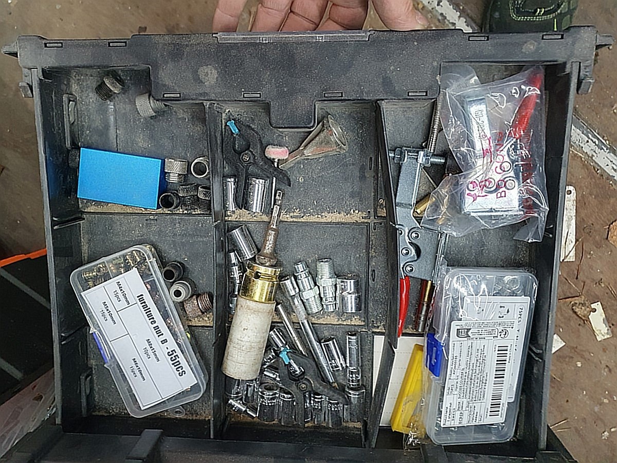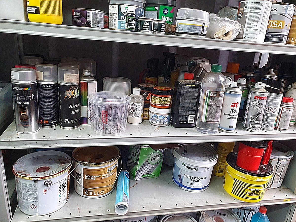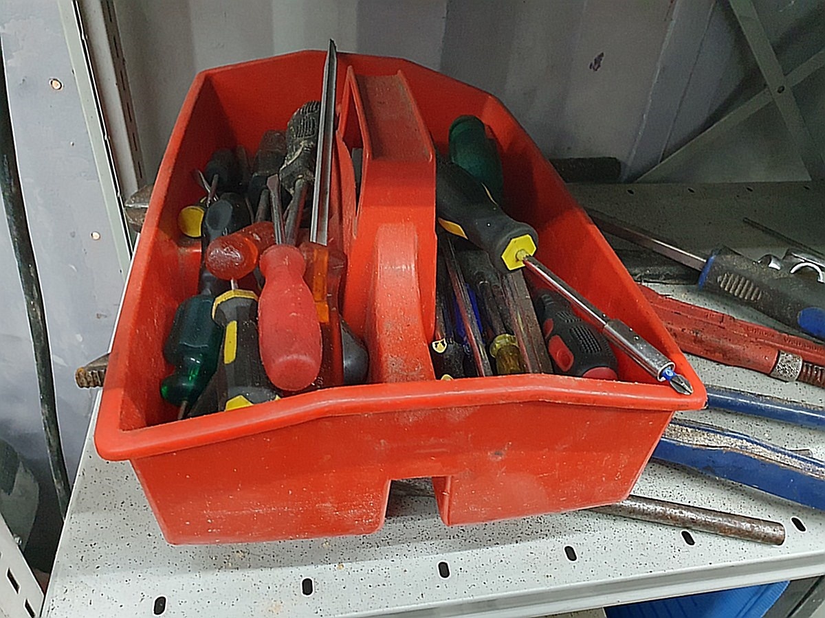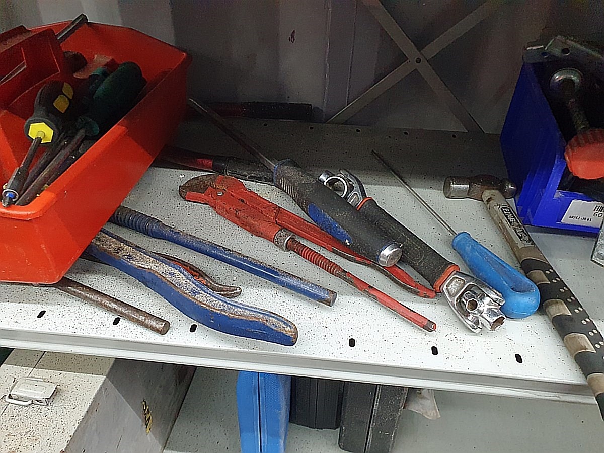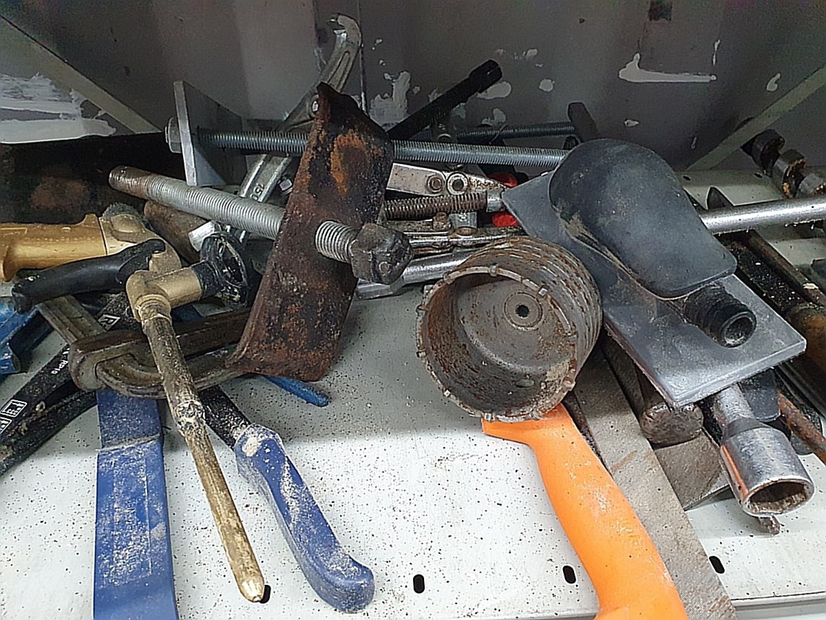 Myyntikohteet » UP Rakennus Tmi:n konkurssipesä (3155713-5), KÄMMENNIEMI, 05.11.2025 » 8. Hyllyn tavarat ja hyllyt (4 hyllyväliä) sekä työkalutaulu (8B)