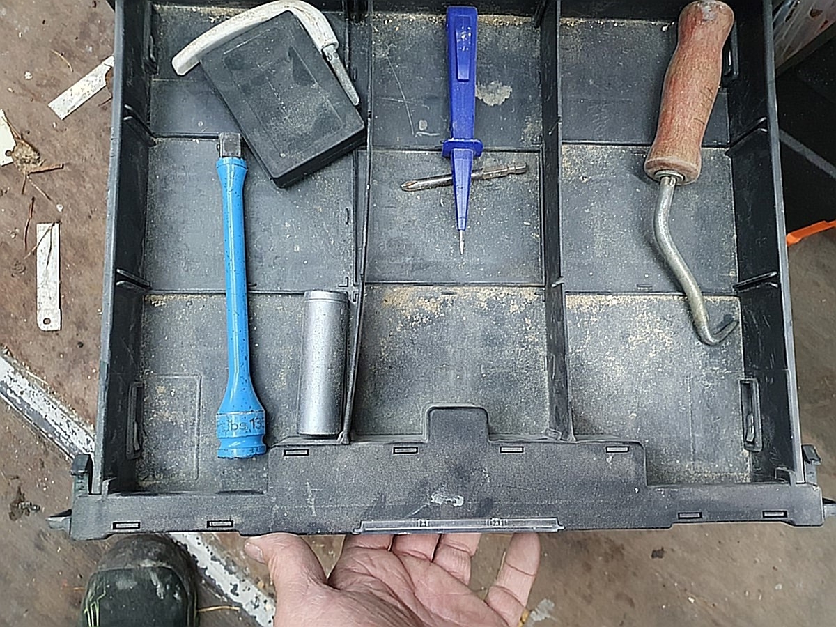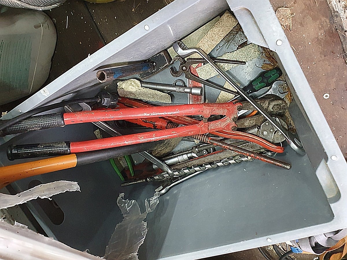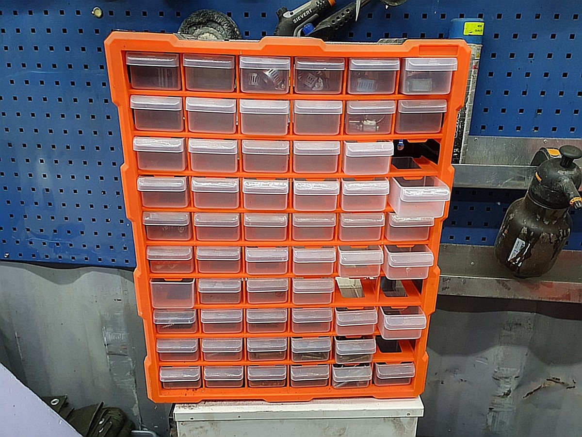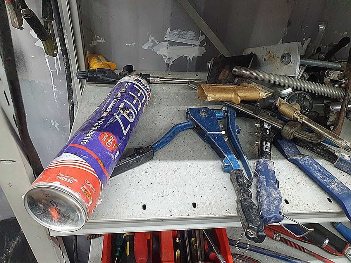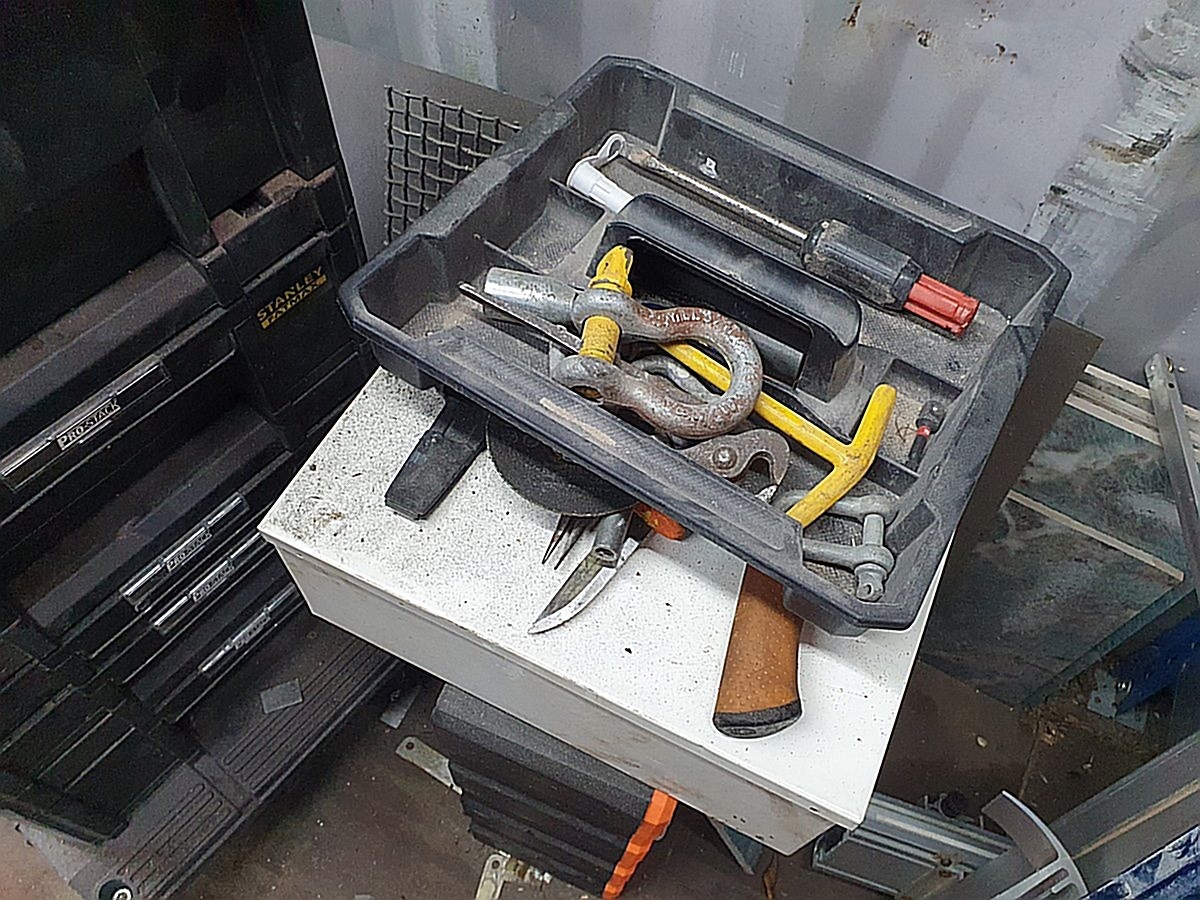 Myyntikohteet » UP Rakennus Tmi:n konkurssipesä (3155713-5), KÄMMENNIEMI, 05.11.2025 » 8. Hyllyn tavarat ja hyllyt (4 hyllyväliä) sekä työkalutaulu (8B)