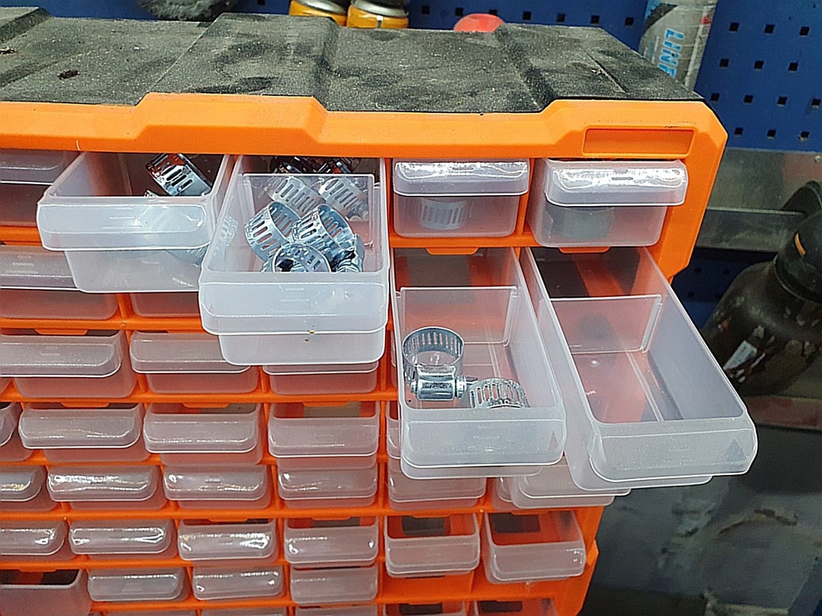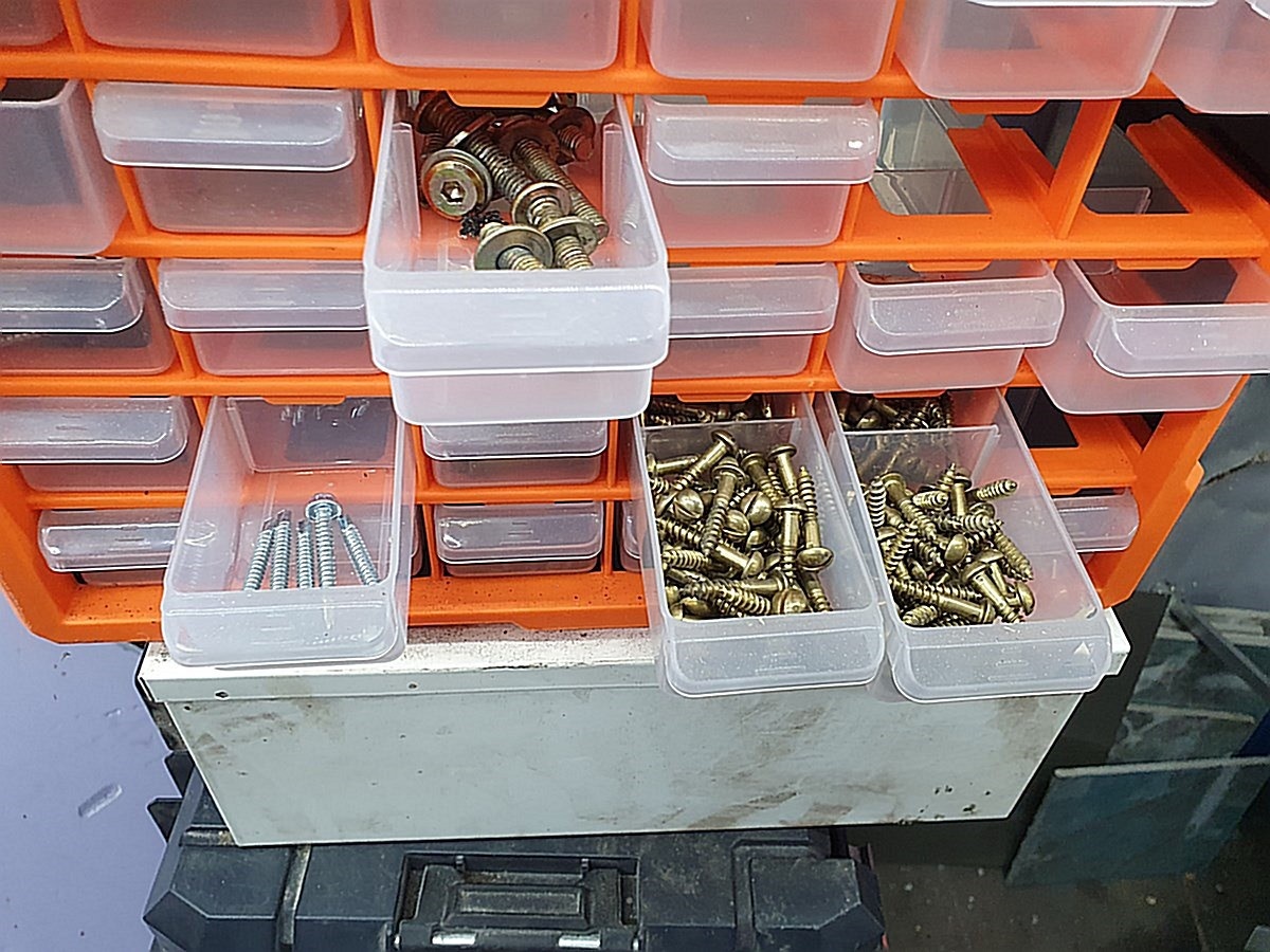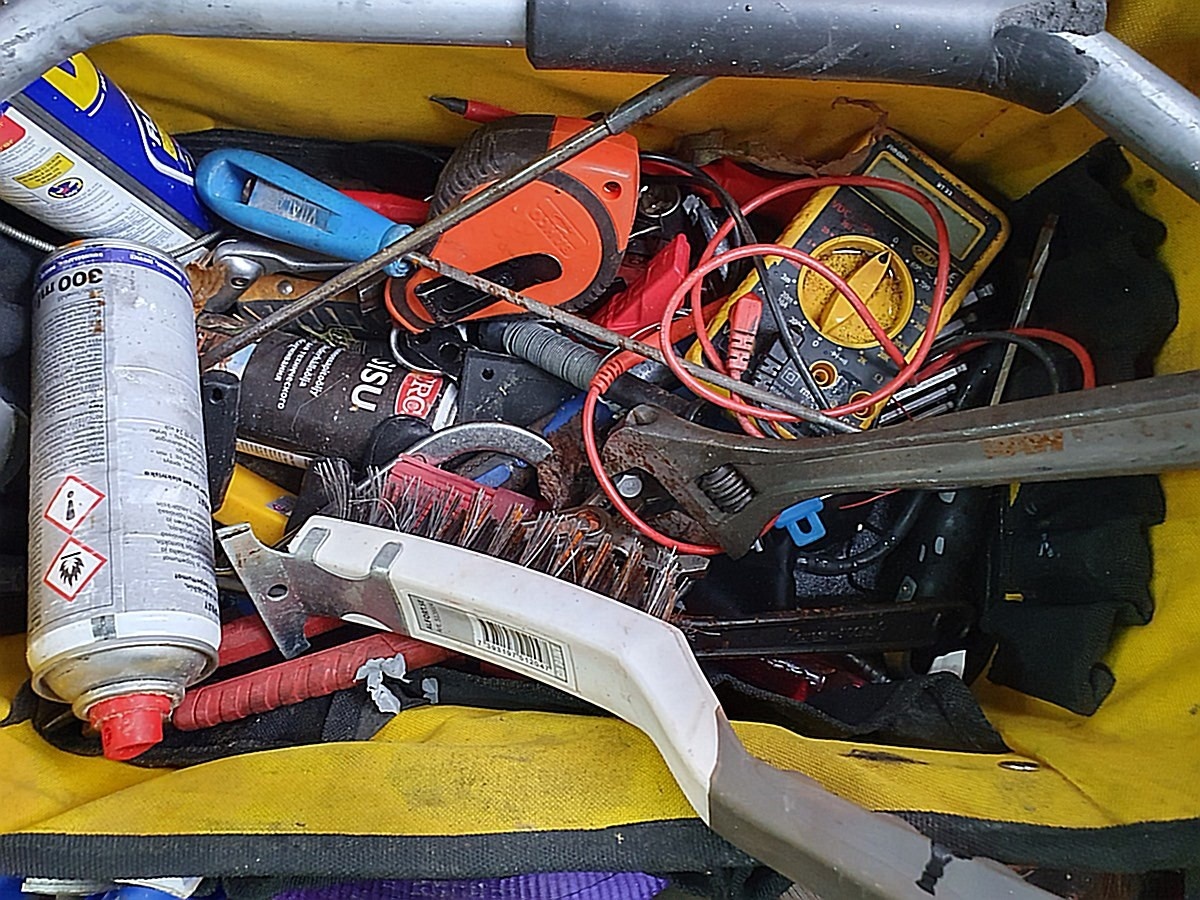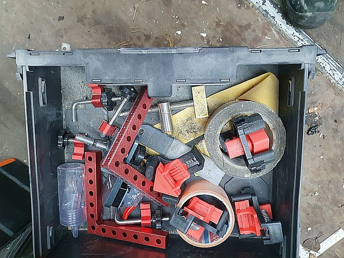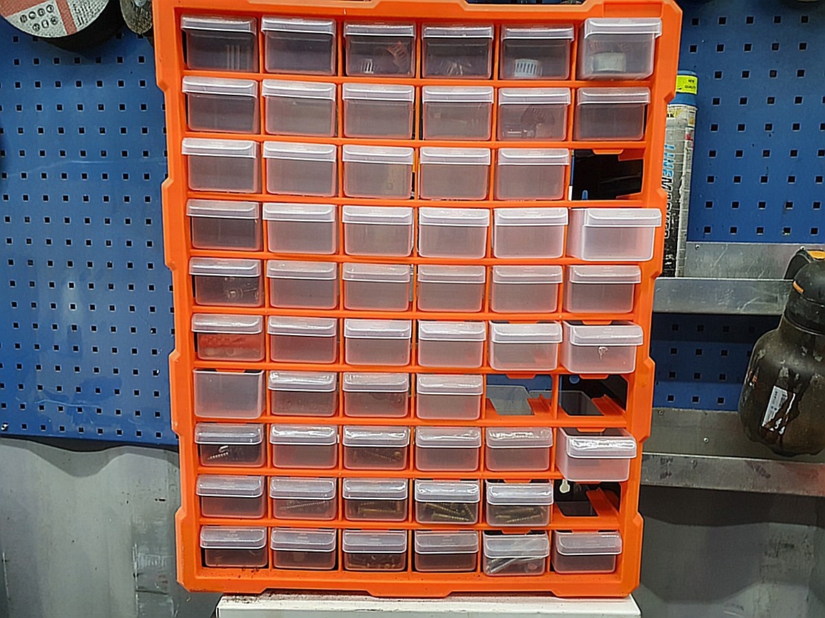 Myyntikohteet » UP Rakennus Tmi:n konkurssipesä (3155713-5), KÄMMENNIEMI, 05.11.2025 » 8. Hyllyn tavarat ja hyllyt (4 hyllyväliä) sekä työkalutaulu (8B)