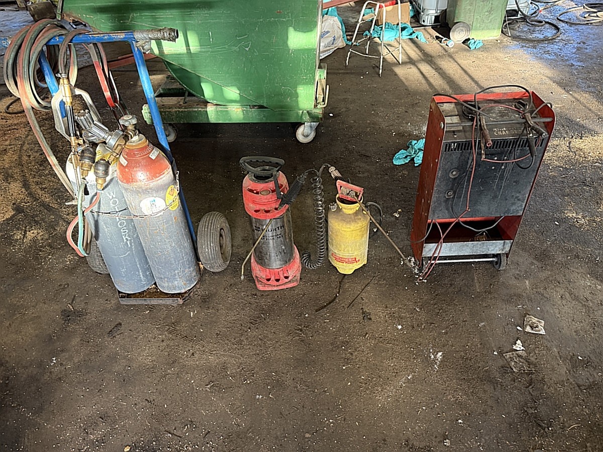 Myyntikohteet » 2. Yritysjärjestely, MÄNTTÄ-VILPPULA, 17.11.2025 » 16. Kaasupullokärry polttoleikkauspolttimella ja kaasuletkuilla, akkulaturi EINHELL ja pumppupullot (2 kappaletta)