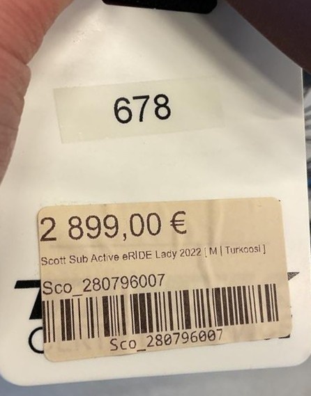 Myyntikohteet » 1. Seven Bikes Oy:n konkurssipesä, TAMPERE (3215327-1), 17.11.2025 » 678. Naisten hybridi sähköpyörä Scott Sub Active eRIDE Lady - M Koko / Turkoosi
