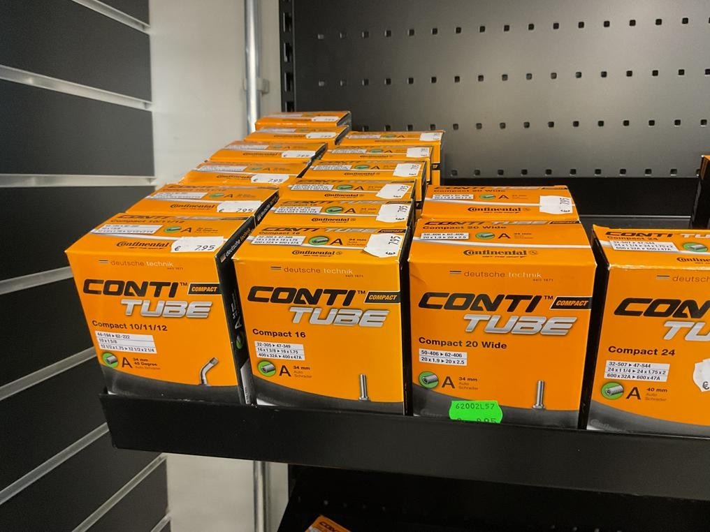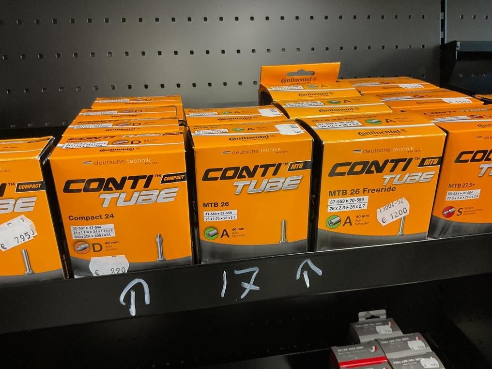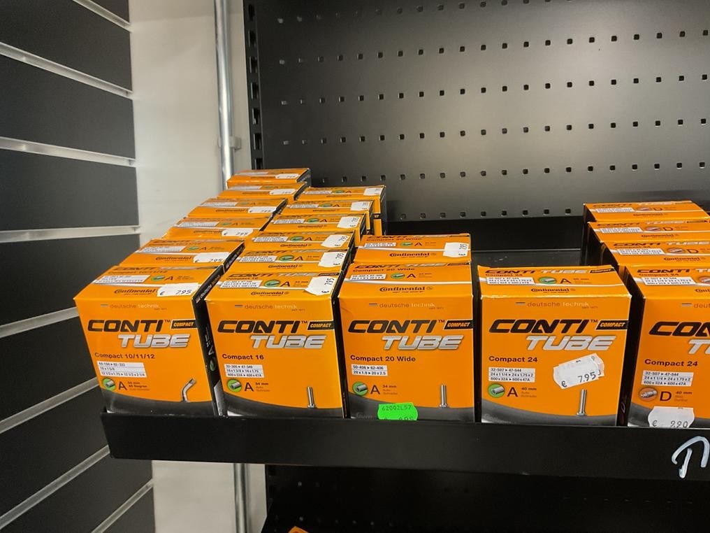 Myyntikohteet » 3. Seven Bikes Oy:n konkurssipesä, TAMPERE (3215327-1), 17.11.2025 » 17. Hylly tasolla olevat polkupyörä sisärenkaat Continental 29 kappaletta