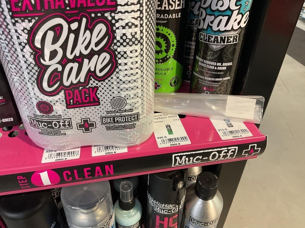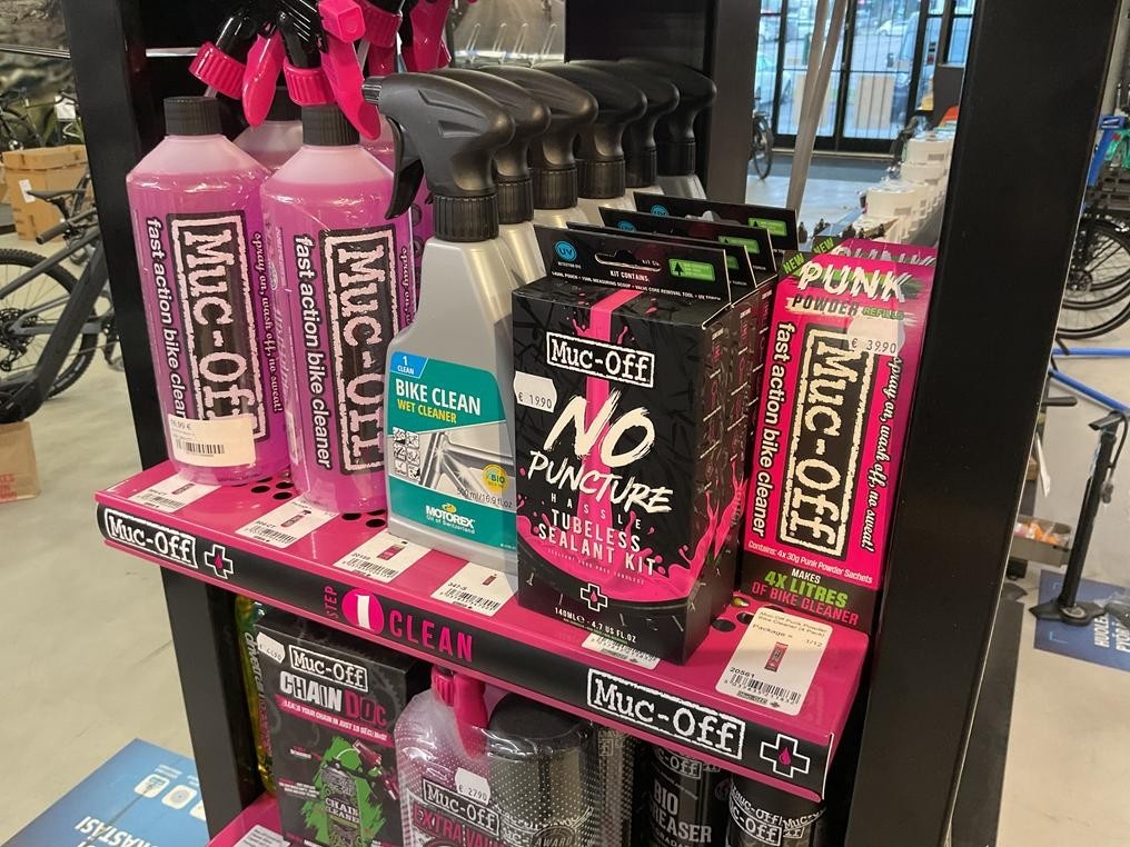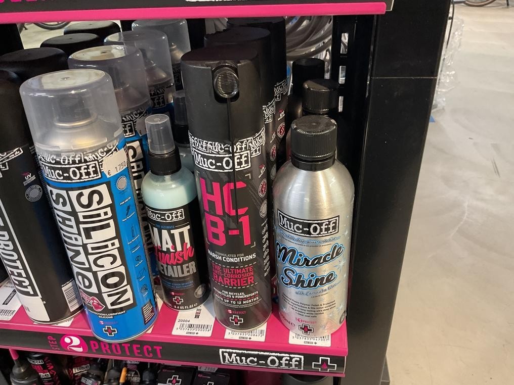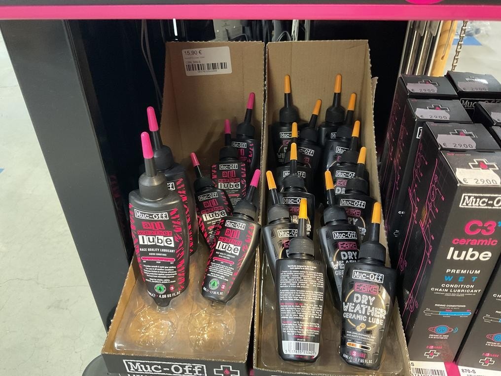 Myyntikohteet » 3. Seven Bikes Oy:n konkurssipesä, TAMPERE (3215327-1), 17.11.2025 » 37. Muc-Off pyöränhuolto aineet yhteensä 87 kappaletta, Muc-Off myymälähylly