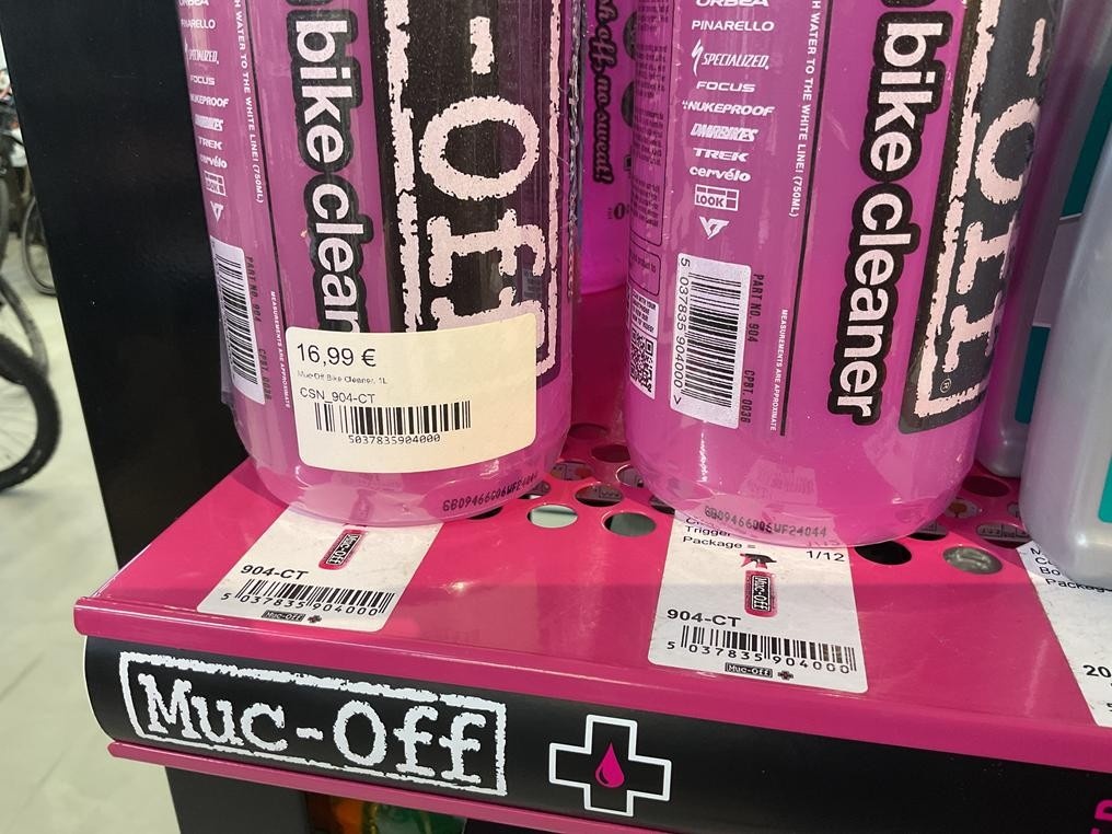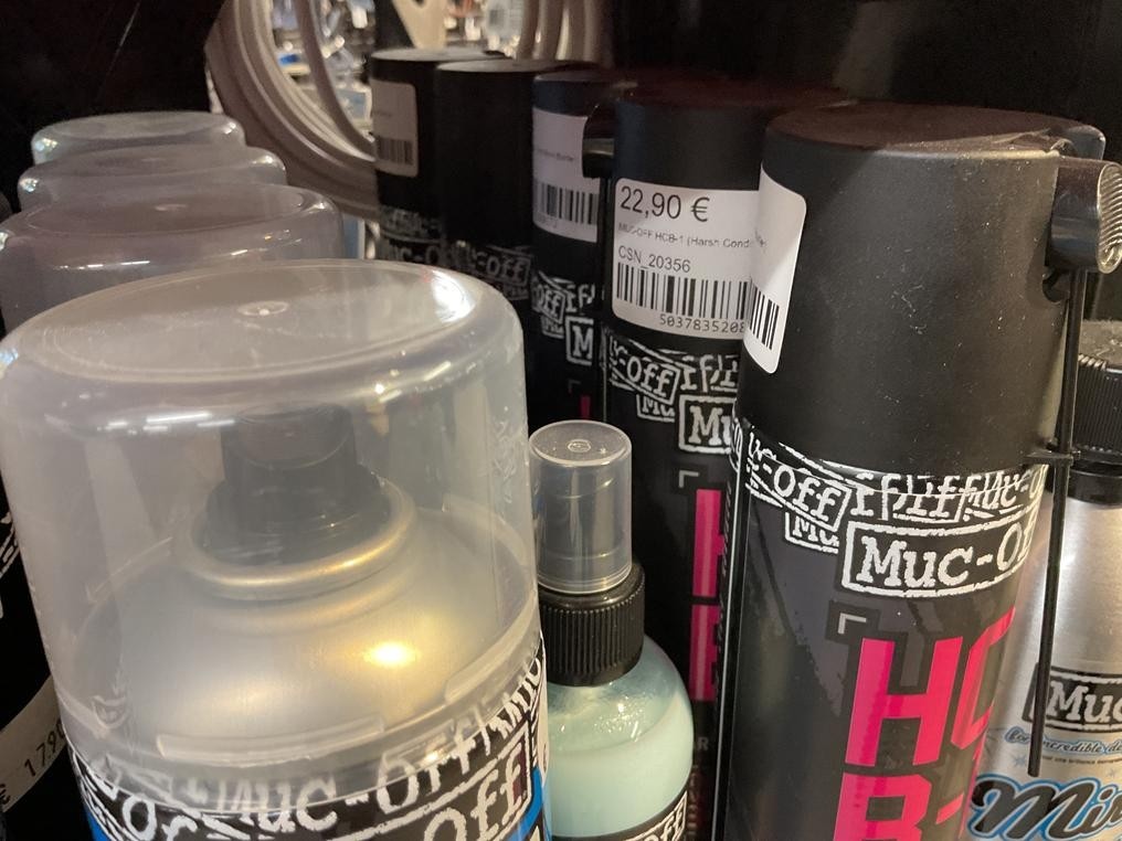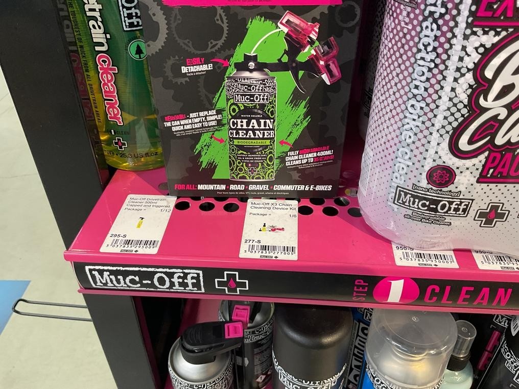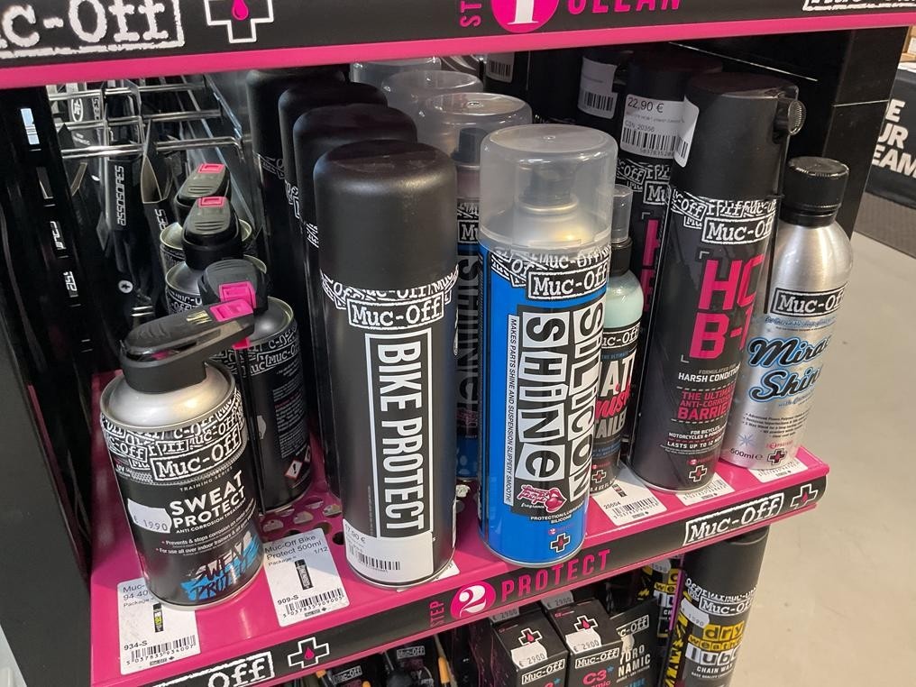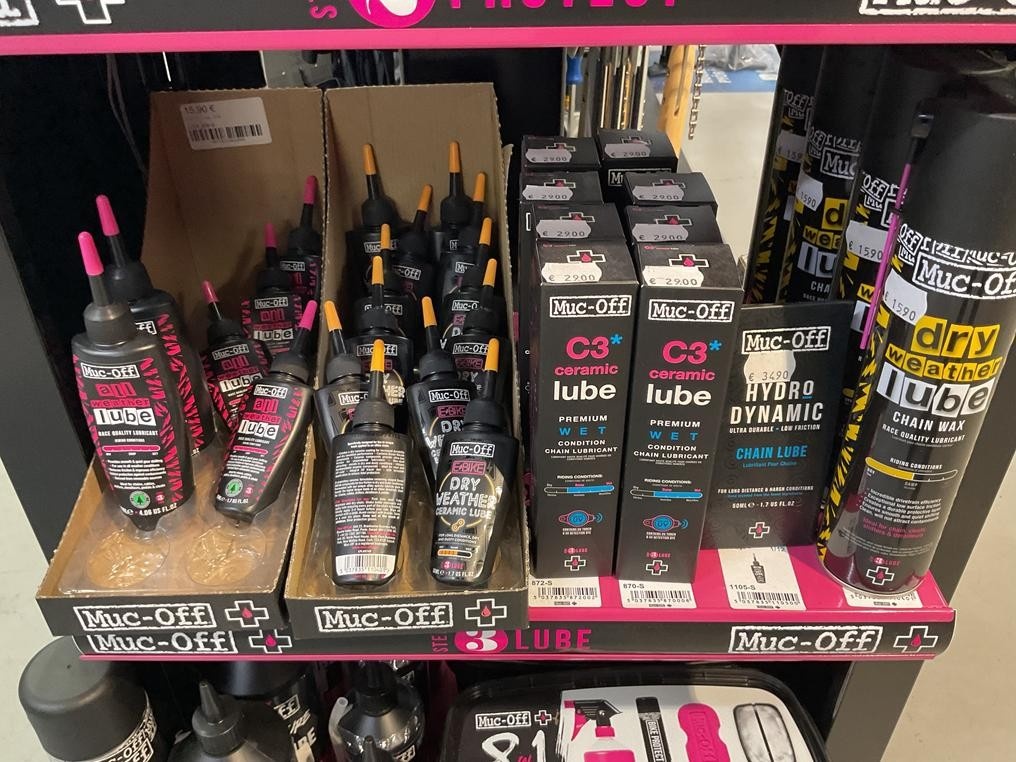 Myyntikohteet » 3. Seven Bikes Oy:n konkurssipesä, TAMPERE (3215327-1), 17.11.2025 » 37. Muc-Off pyöränhuolto aineet yhteensä 87 kappaletta, Muc-Off myymälähylly