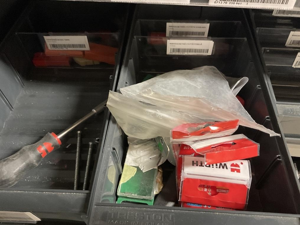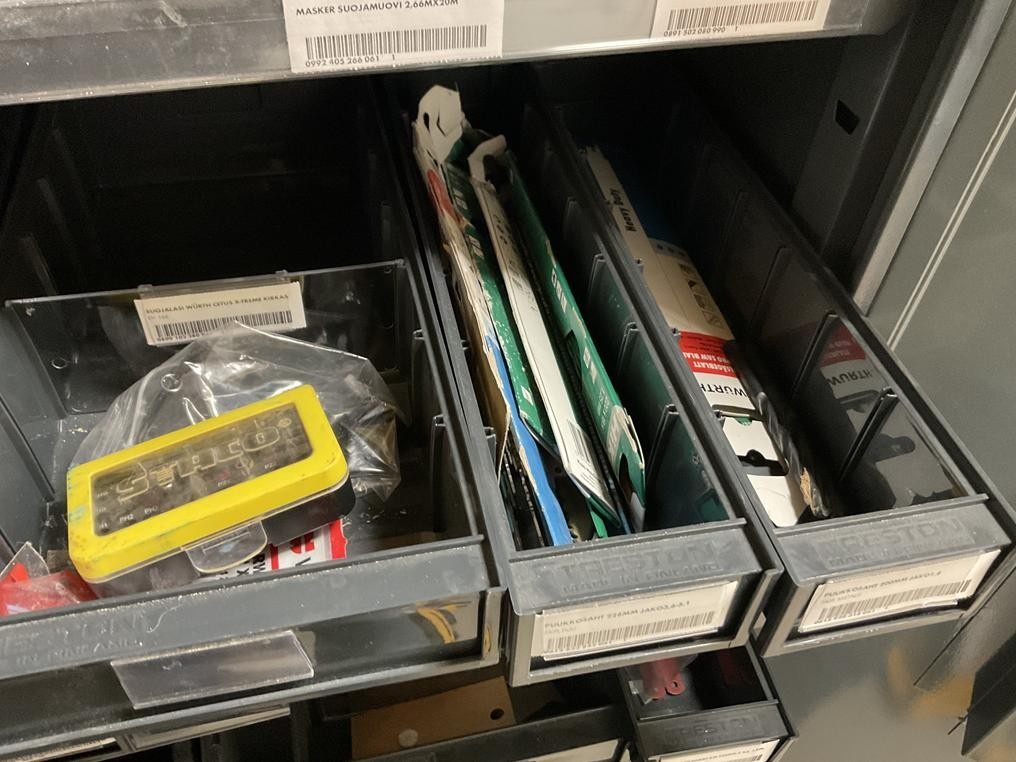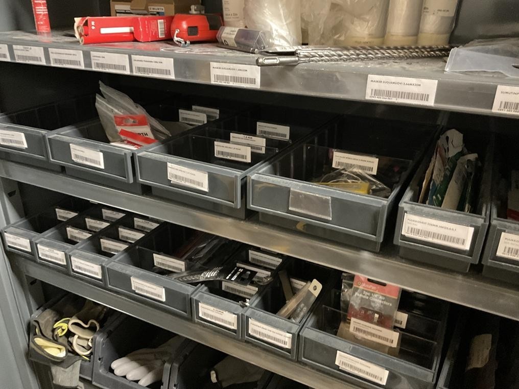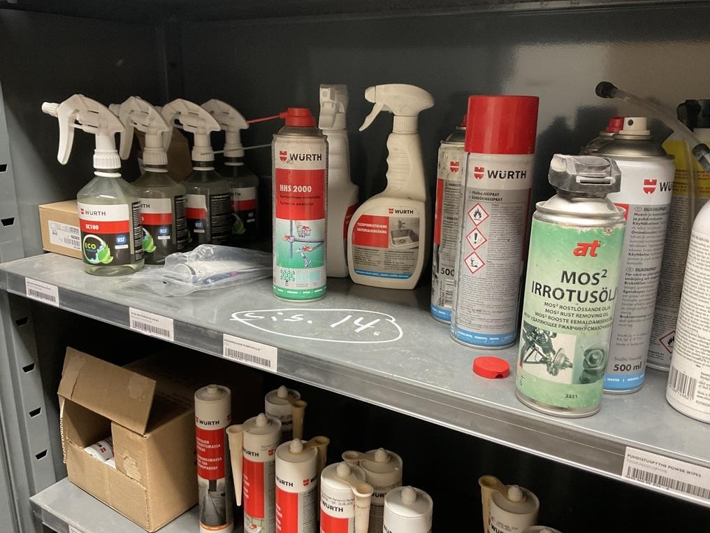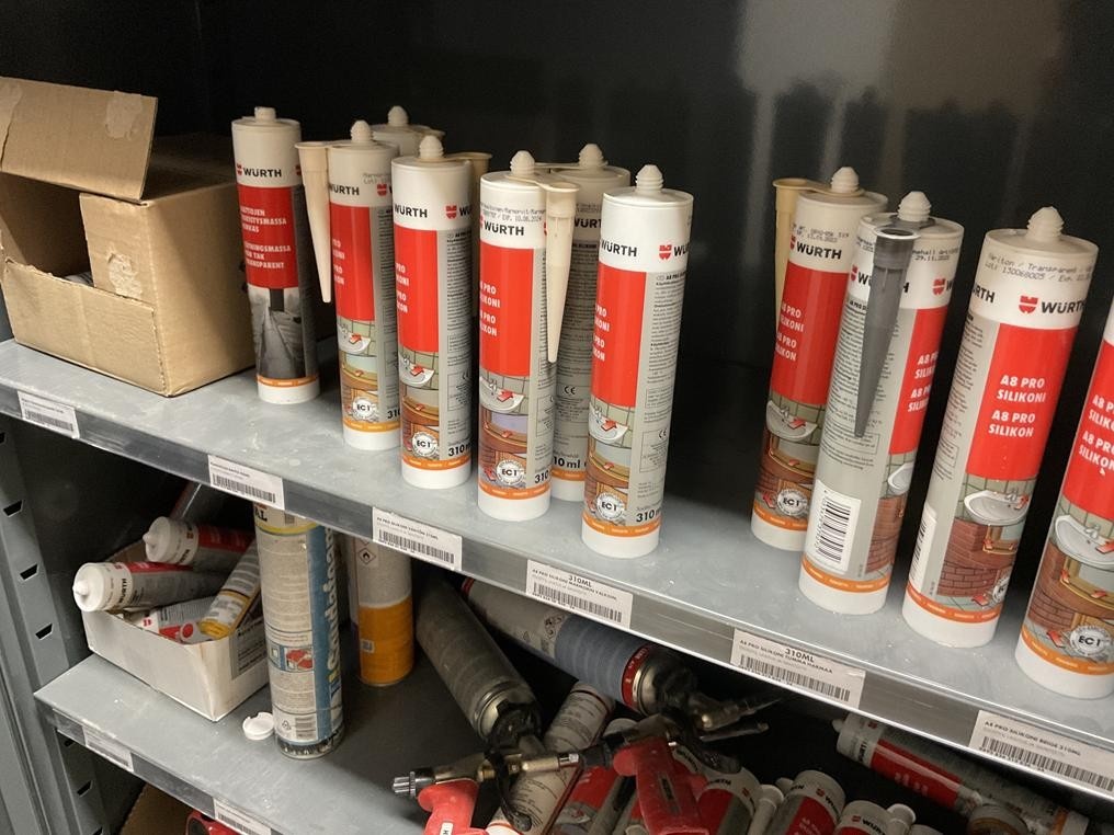 Myyntikohteet » 2. Rakennustyöt Pulkkinen Oy:n konkurssipesä, RAISIO (2912661-9), 18.11.2025 » 14. Kahdessa kaapissa olevat silikonit, teipit ym. tarvikkeet