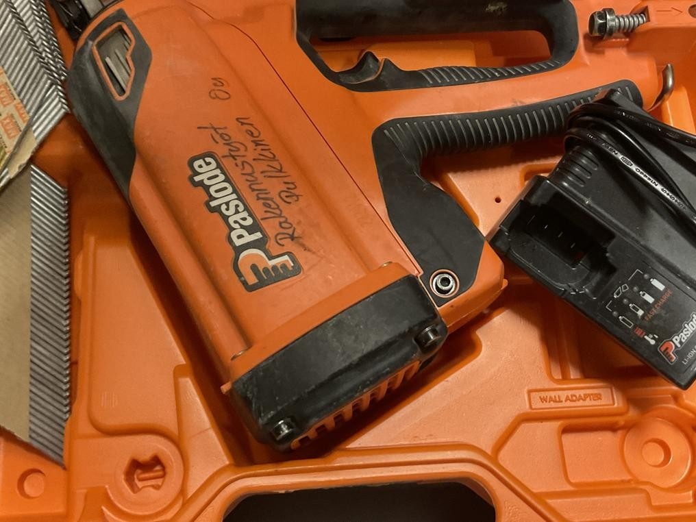 Myyntikohteet » 2. Rakennustyöt Pulkkinen Oy:n konkurssipesä, RAISIO (2912661-9), 18.11.2025 » 24. Impulssirunkonaulain Paslode IM350+ (akku ja laturi)
