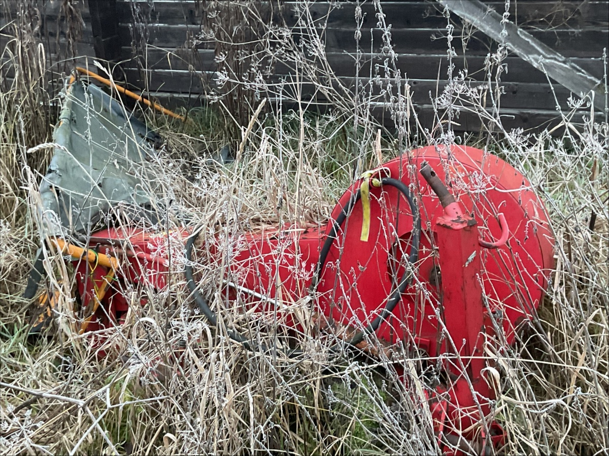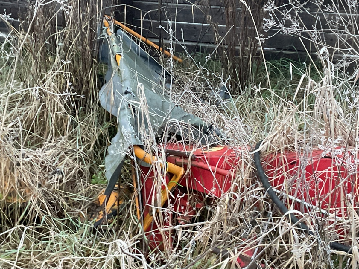 Myyntikohteet » 1. Kuolinpesä myy henkilöauto Volvo 240 vm. 1982 ja vanhat maatalouskoneet / -laitteet, SUOMUSJÄRVI, 21.11.2025 » 06. Vanha niittokone myydään korjattavaksi