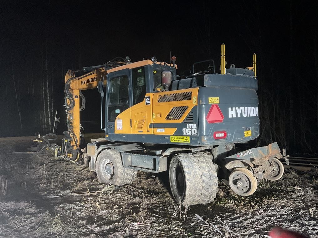 Myyntikohteet » 1. SuperMedia Group SMG Oy:n konkurssipesä, JYVÄSKYLÄ / TAMPERE / ÄÄNEKOSKI (3009999-6), 20.11.2025 » A03. Pyöräalustainen ratavarusteltu kaivinkone Hyundai HW160 vm. 2021 (629-EAX)