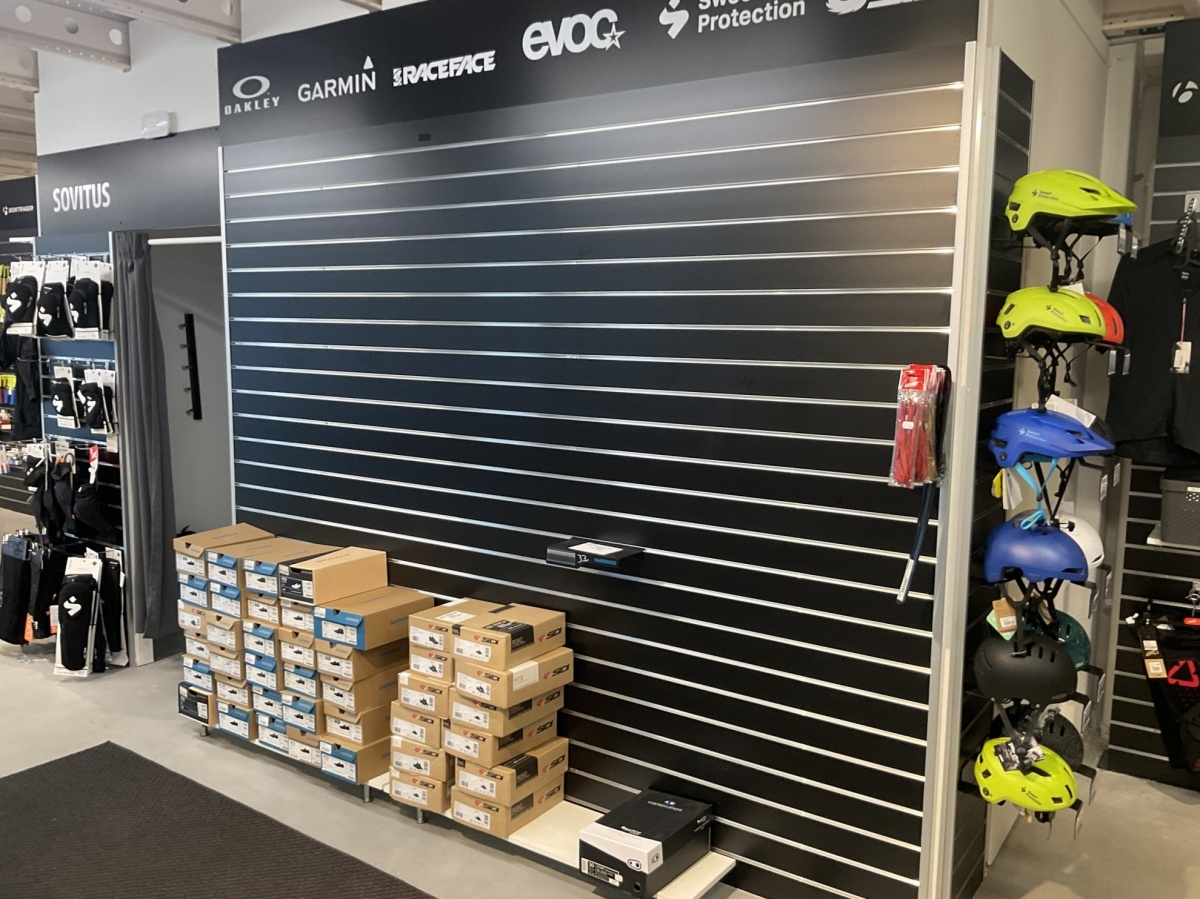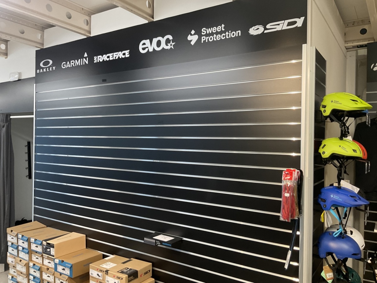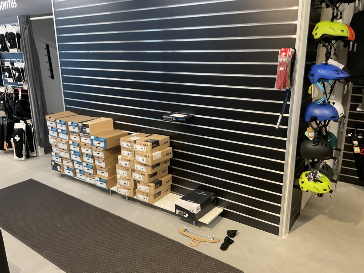 Myyntikohteet » 8. Seven Bikes Oy:n konkurssipesä, TAMPERE (3215327-1), 26.11.2025 » K 04. Musta Slatwall urapaneeliseinä (leveys n. 3 metriä + koukut)