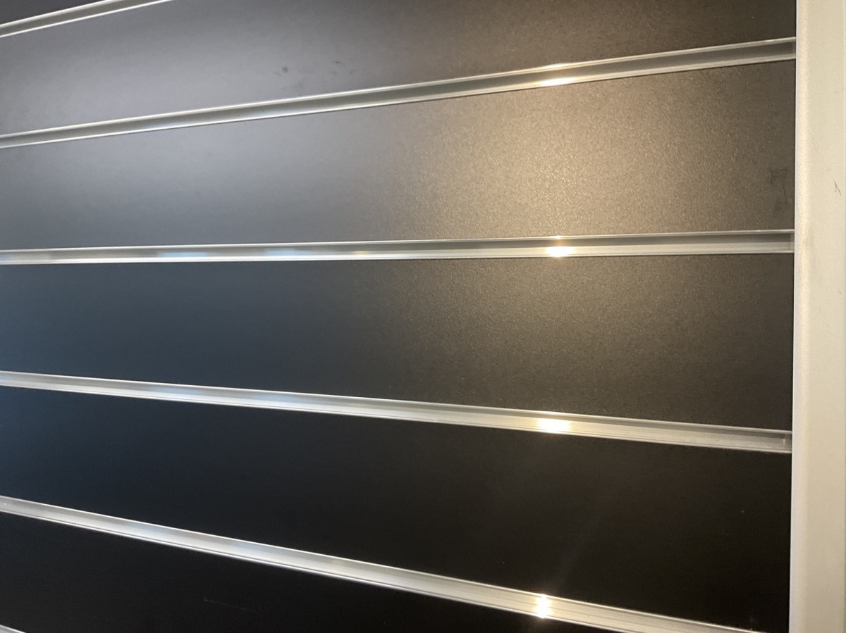 Musta Slatwall urapaneeliseinä (leveys n. 3 metriä + koukut)