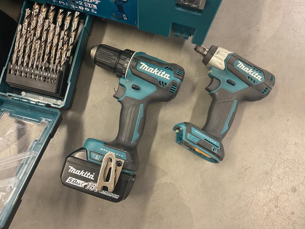 Myyntikohteet » 9. Seven Bikes Oy:n konkurssipesä, TAMPERE (3215327-1), 27.11.2025 » T20. Akkutyökalut Makita 3 kappaletta + akku, laturi, poranteräsarja ja säilytyslaatikko