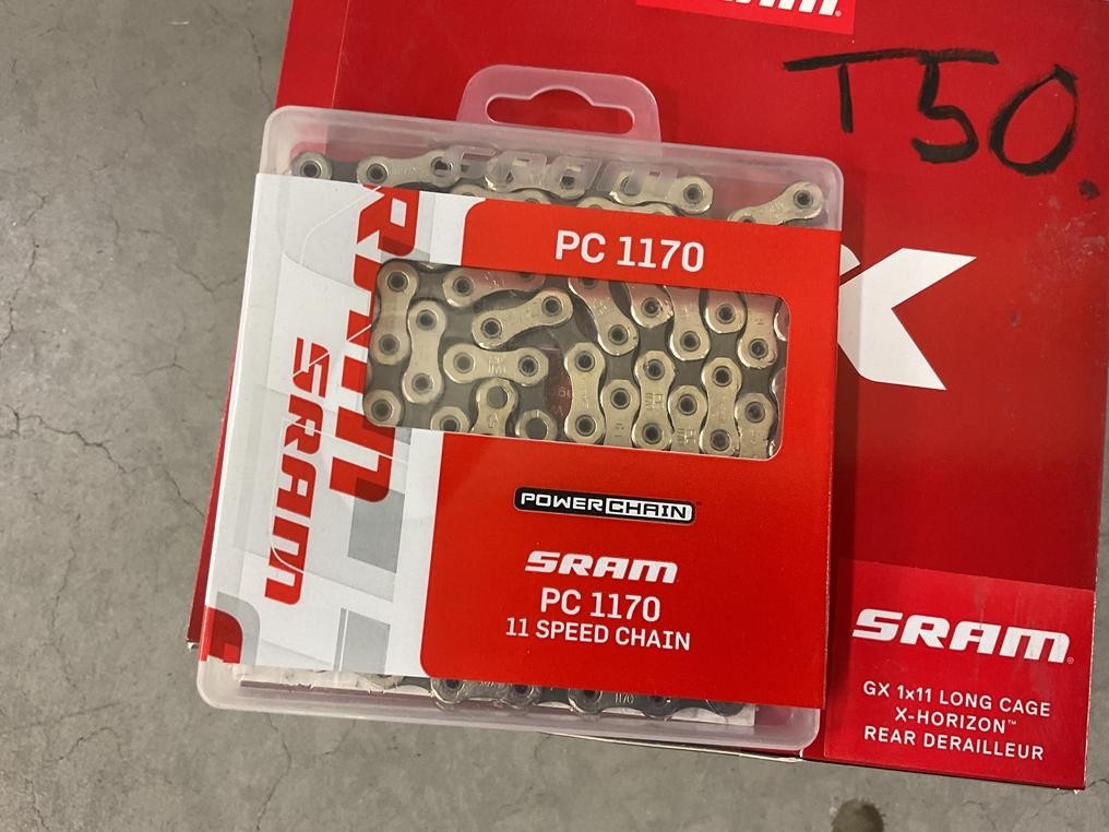 Myyntikohteet » 10. Seven Bikes Oy:n konkurssipesä, TAMPERE (3215327-1), 27.11.2025 » T50. SRAM PC-1170 11-vaihteinen polkupyörän ketju, SRAM GX 1x11 Long Cage X-Horizon takavaihtaja
