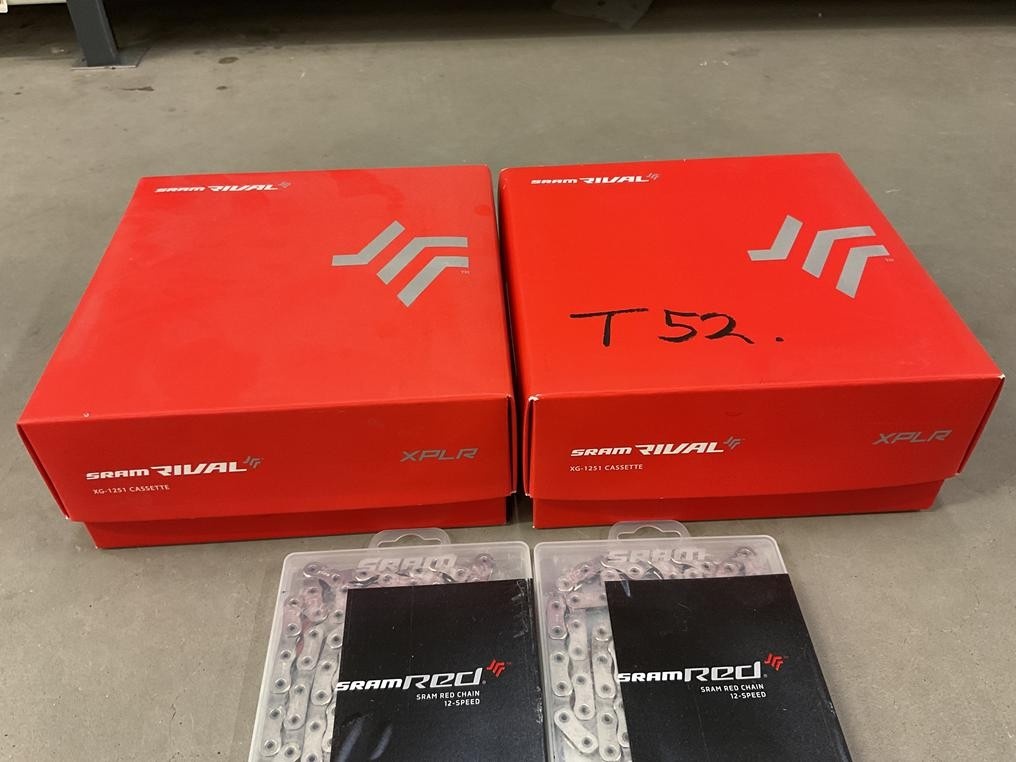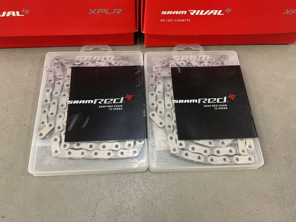 Myyntikohteet » 10. Seven Bikes Oy:n konkurssipesä, TAMPERE (3215327-1), 27.11.2025 » T52. SRAM Red 12-vaihteiset ketjut 2 kappaletta, Sram Rival XG-1251 CASSETTE 2 kappaletta
