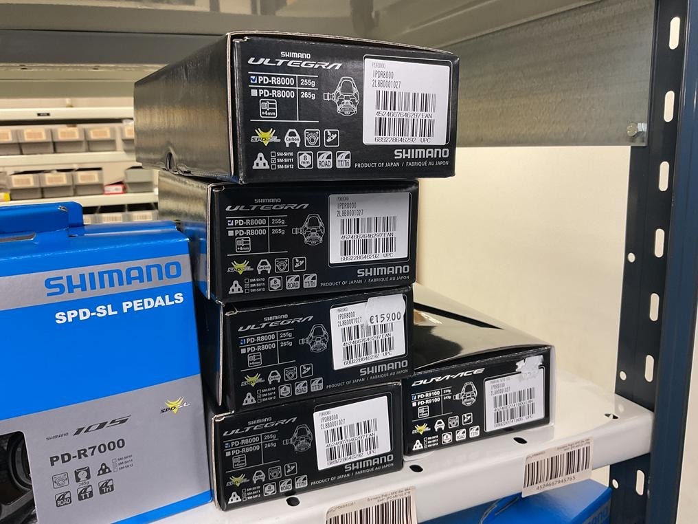 3-hyllytasolla olevat polkupyörien poljin osat Shimano 35 kappaletta